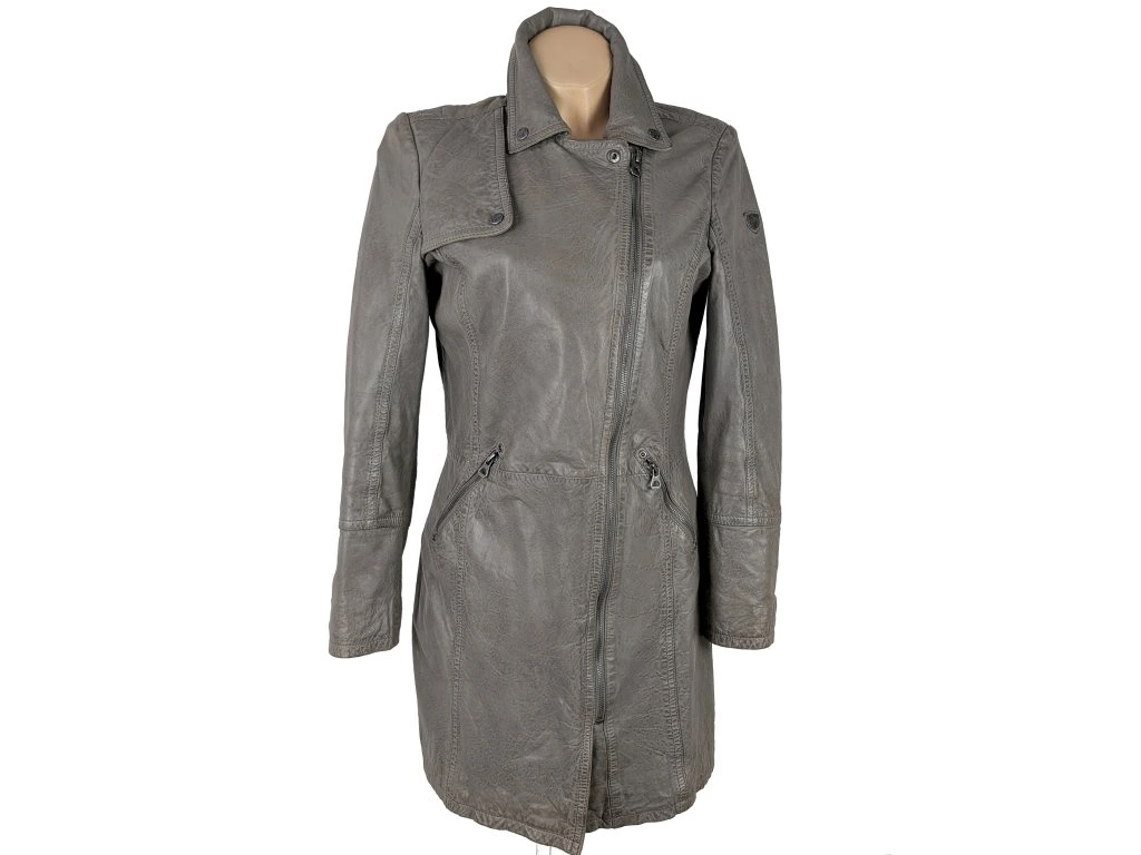 KOŽENÝ dámský hnědý kabát - křivák GIPSY M