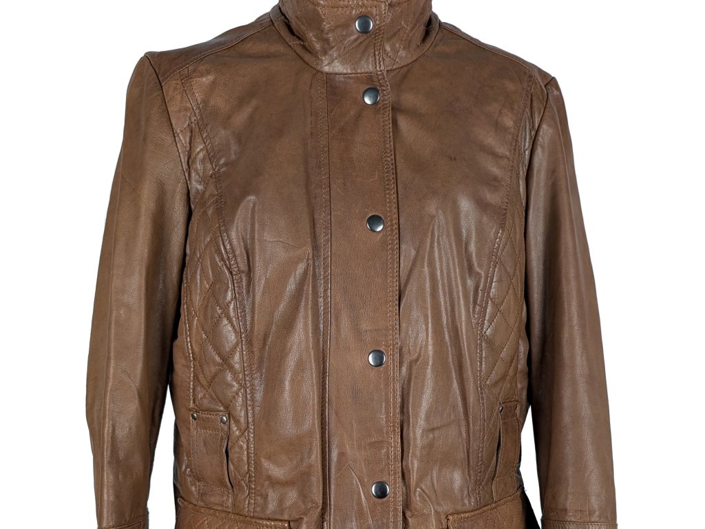 KOŽENÝ dámský hnědý kabát na zip HI BUXTER 46