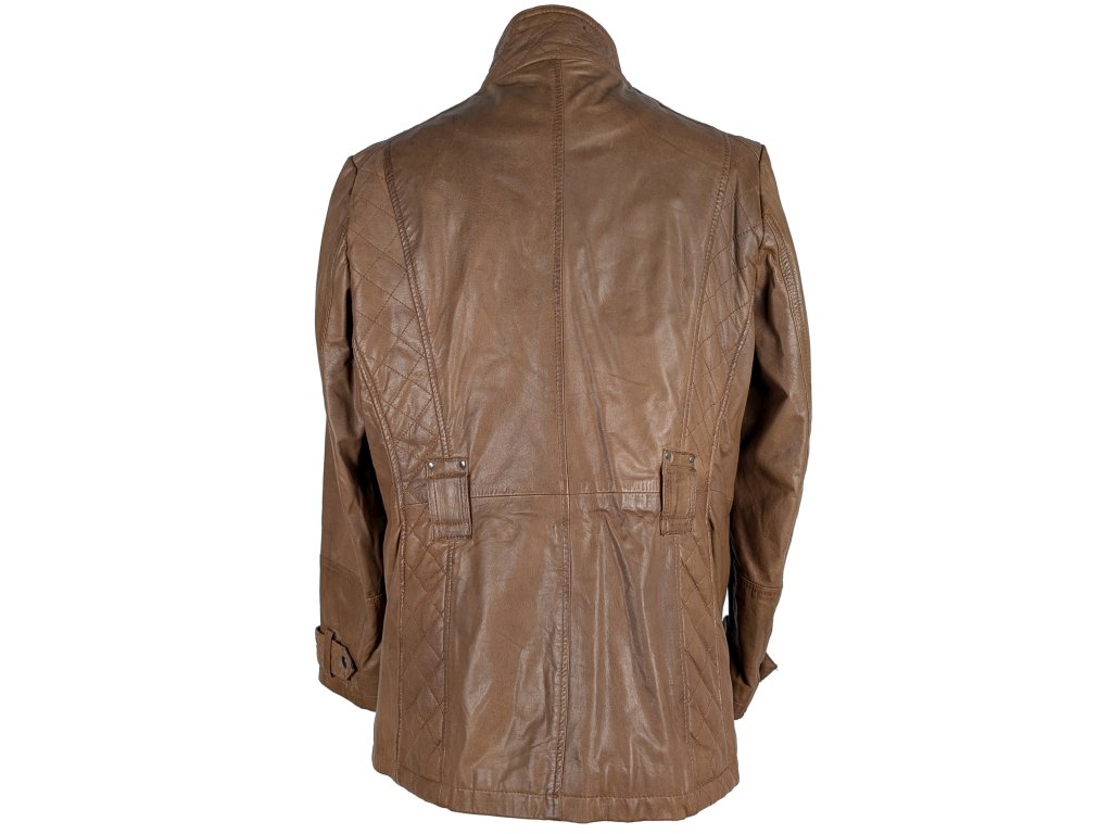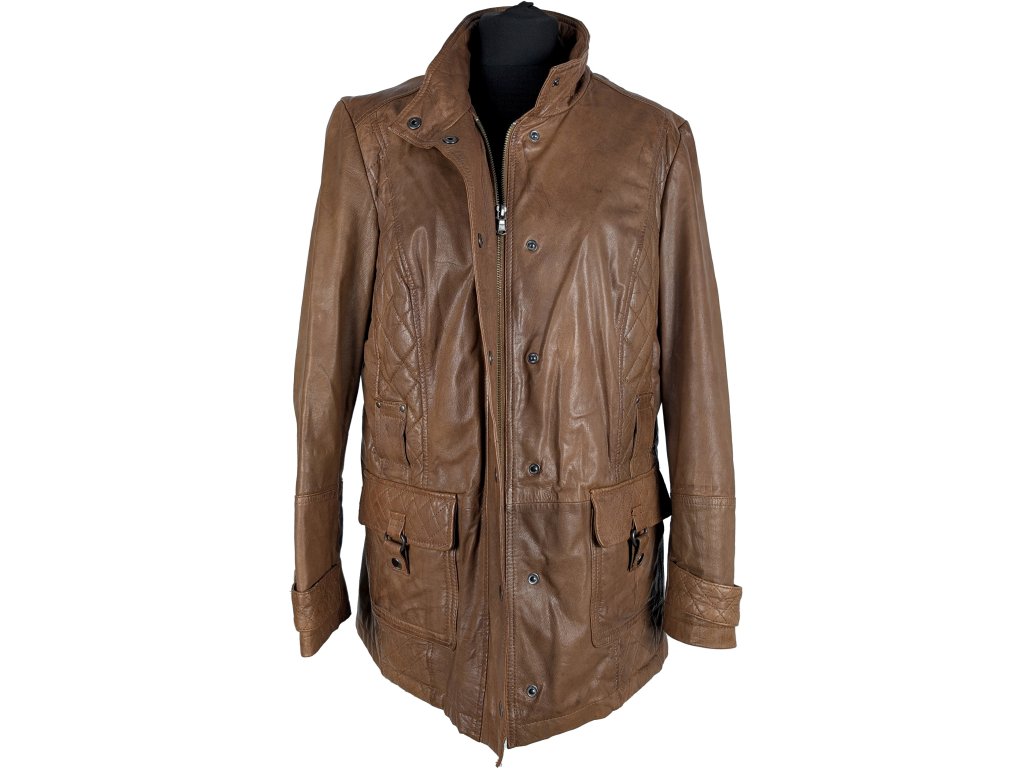 KOŽENÝ dámský hnědý koňakový kabát na zip HI BUXTER 46