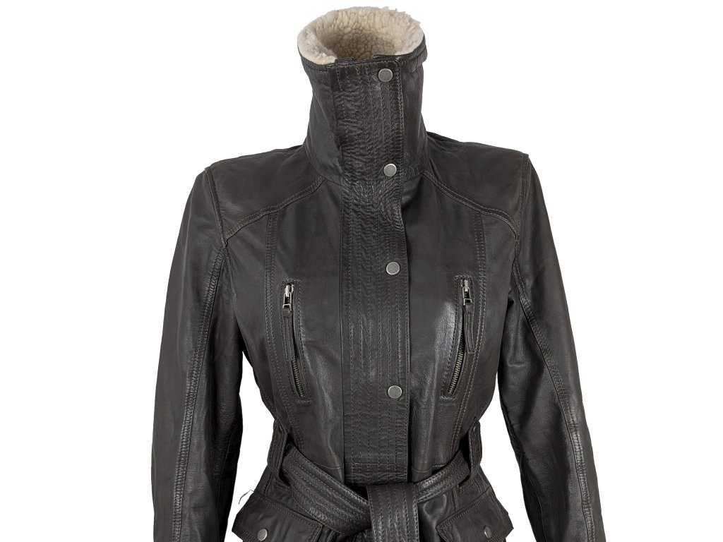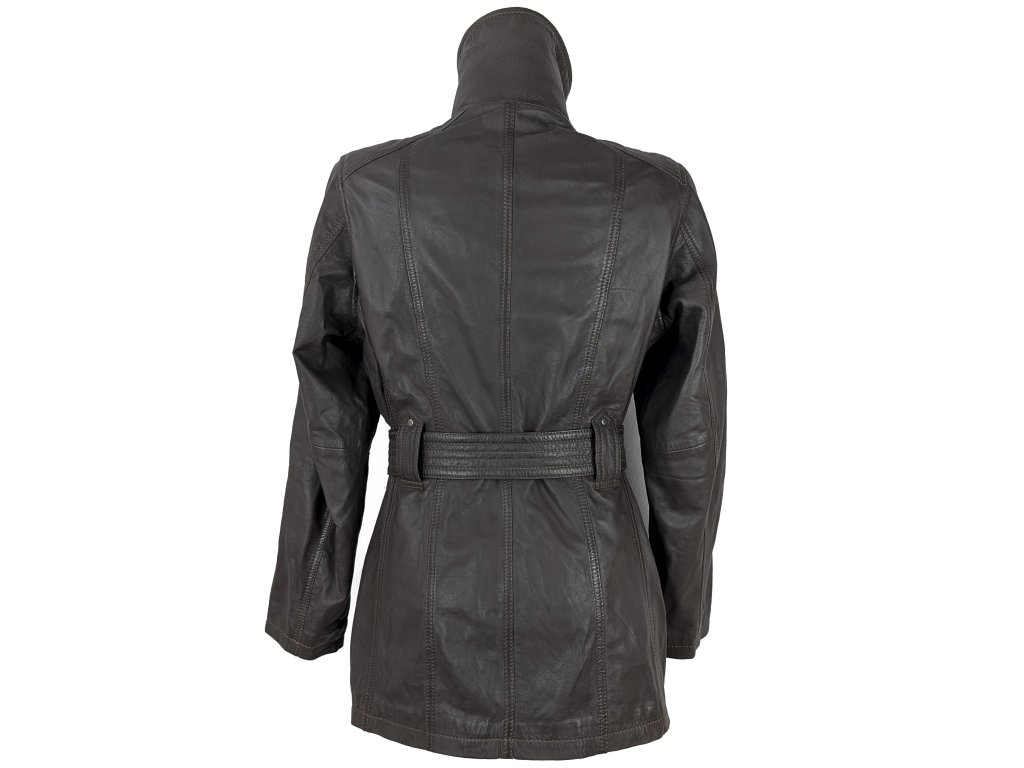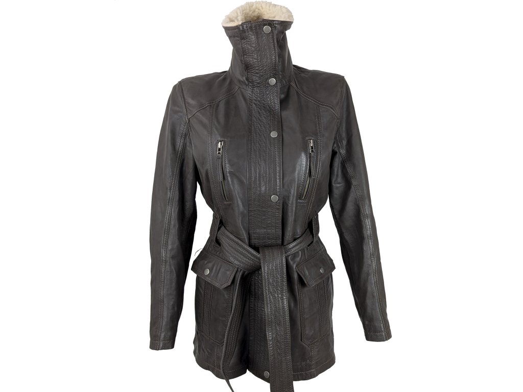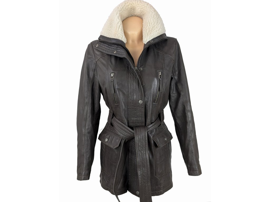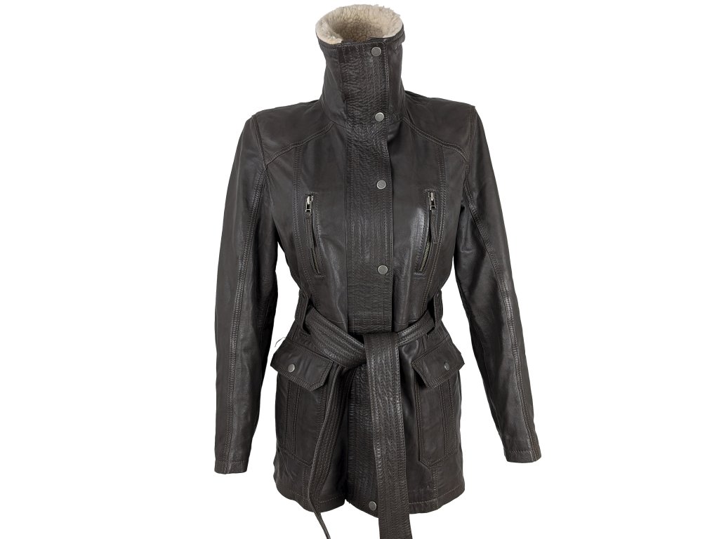 KOŽENÝ dámský hnědý kabát s páskem EVOCO L/XL