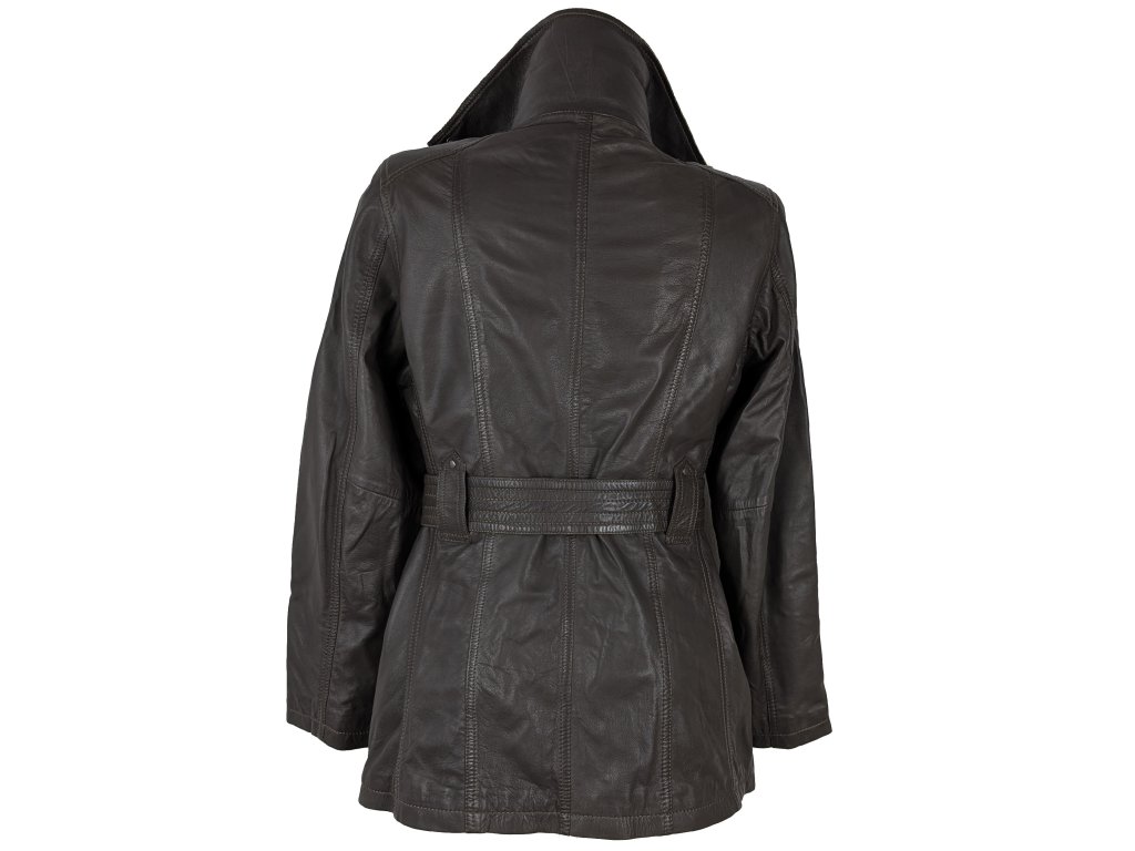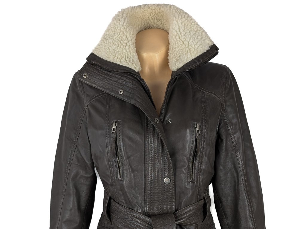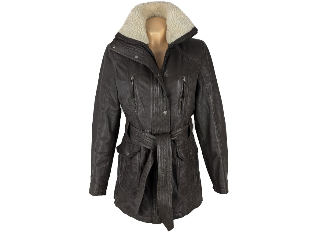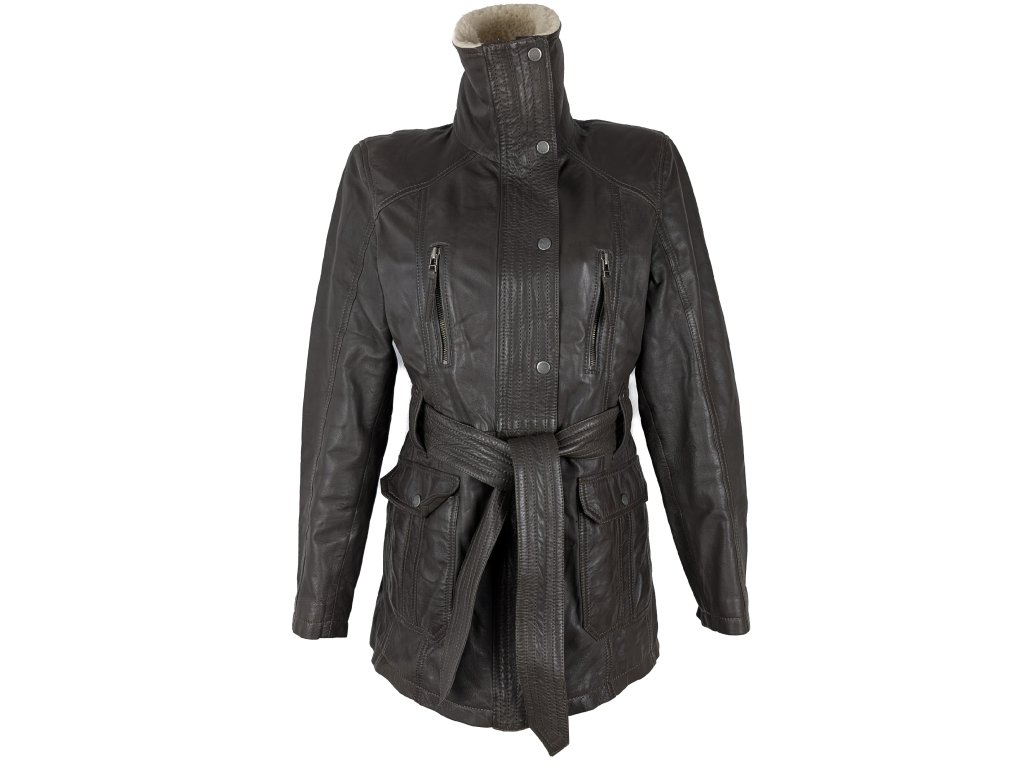 KOŽENÝ dámský hnědý kabát s páskem Evoco L
