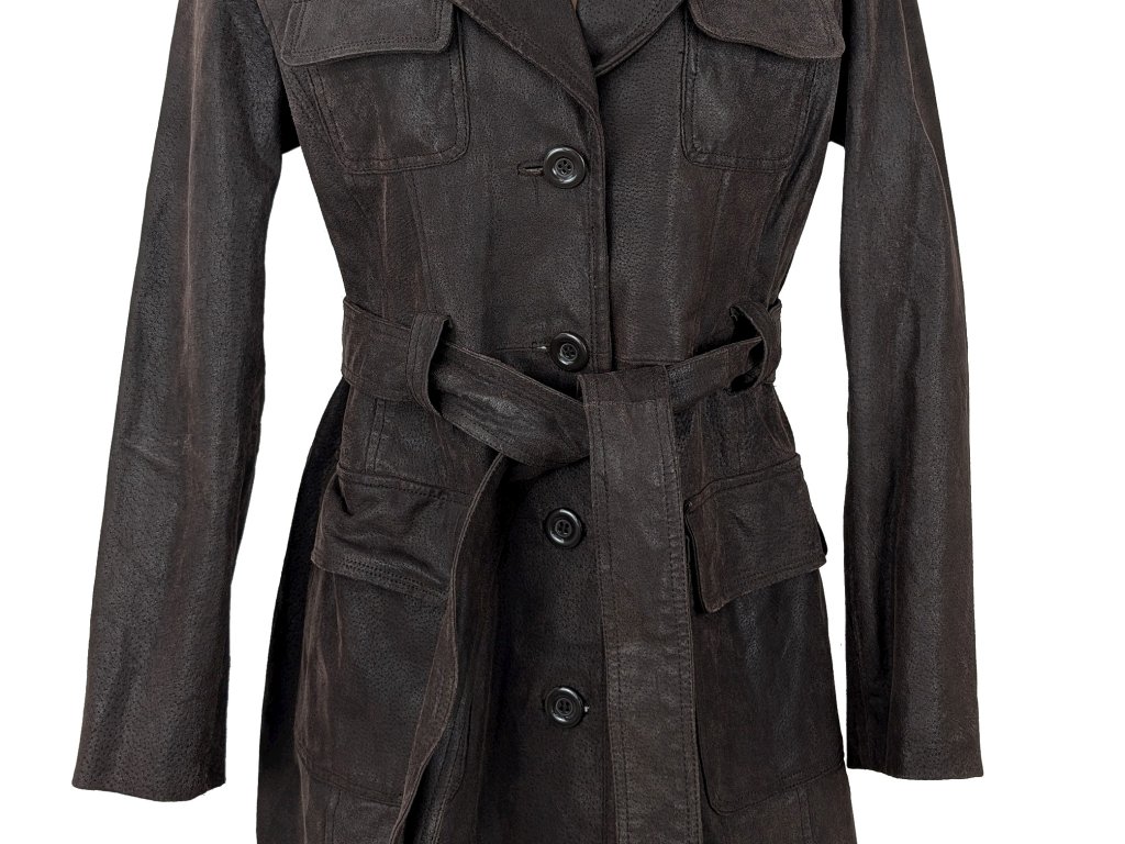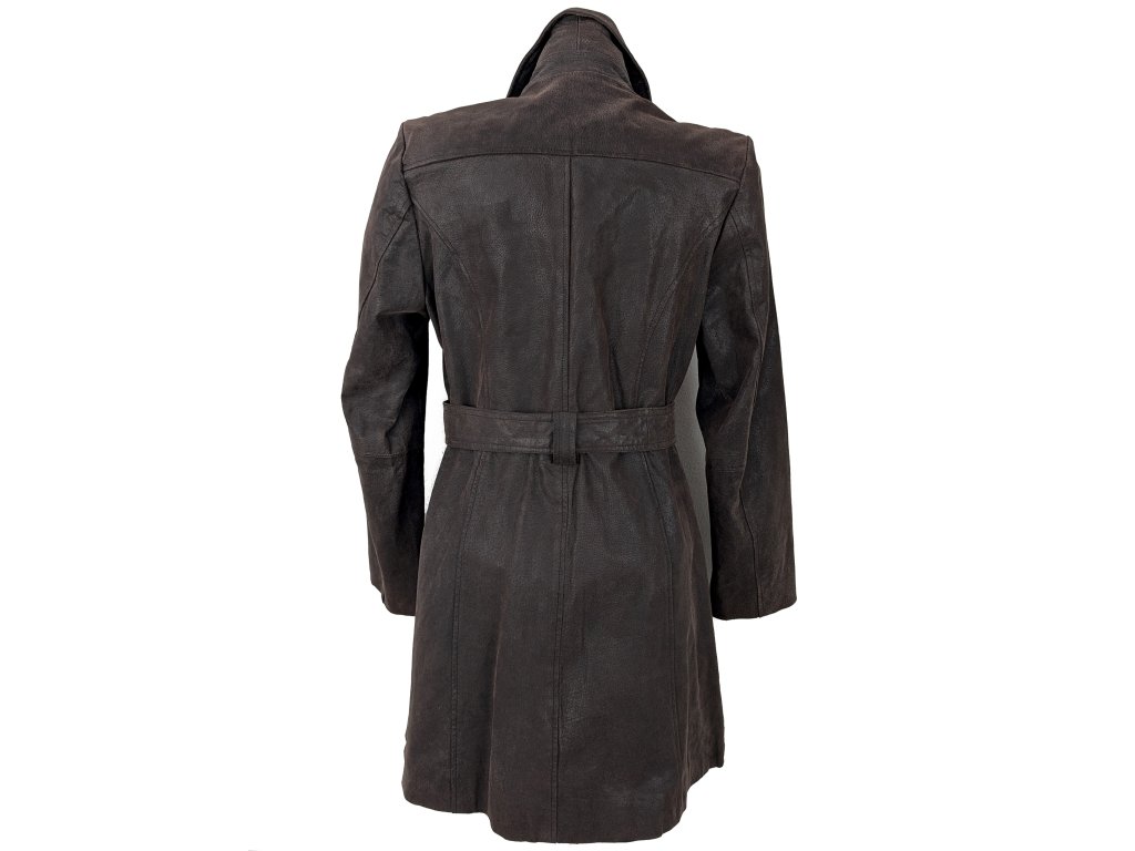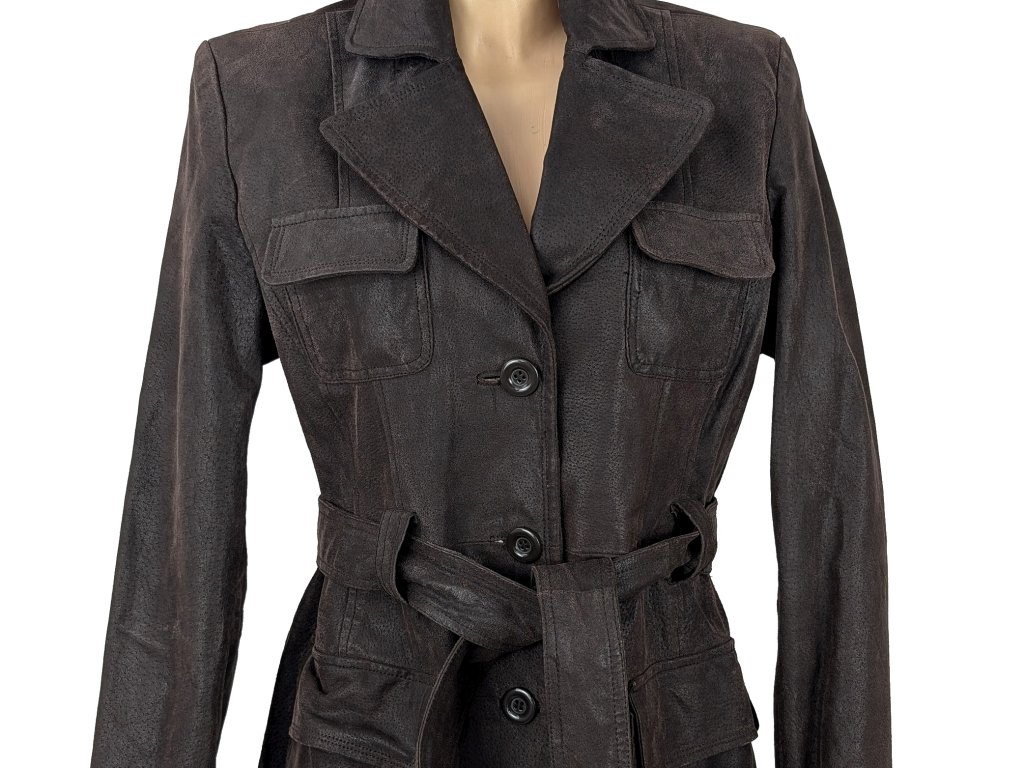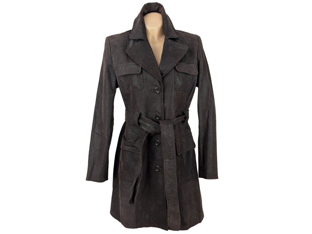 KOŽENÝ dámský hnědý kabát s páskem F&F 44