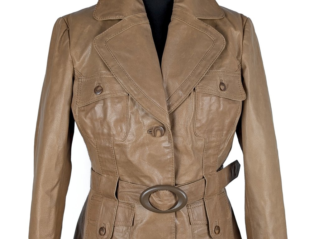 KOŽENÝ dámský hnědý kabátek s páskem Vero Moda M/L