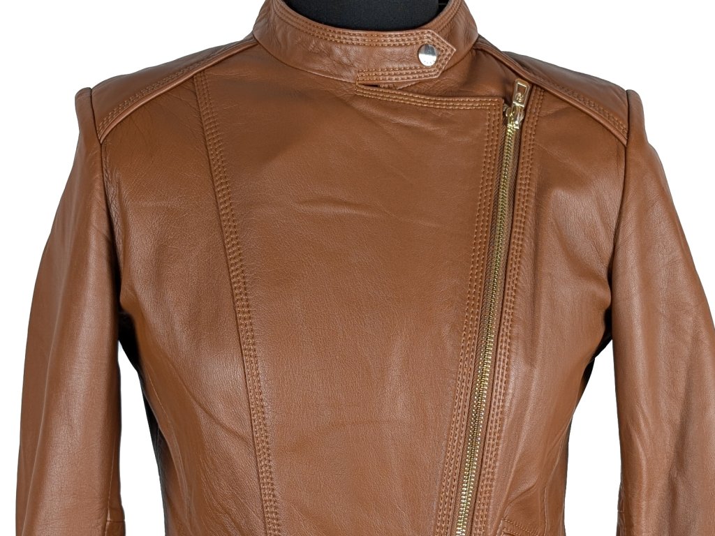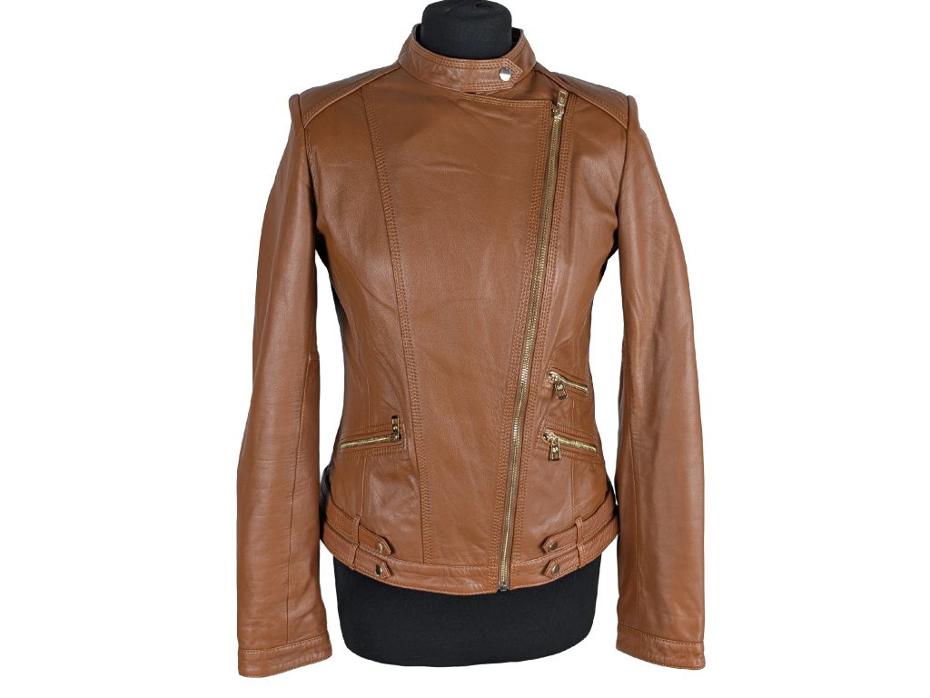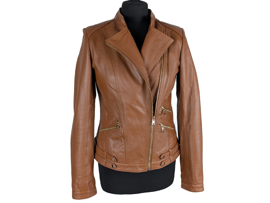 KOŽENÝ dámský hnědý koňakový křivák KARA S
