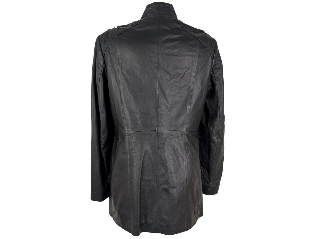 KOŽENÝ dámský černý kabát - křivák L