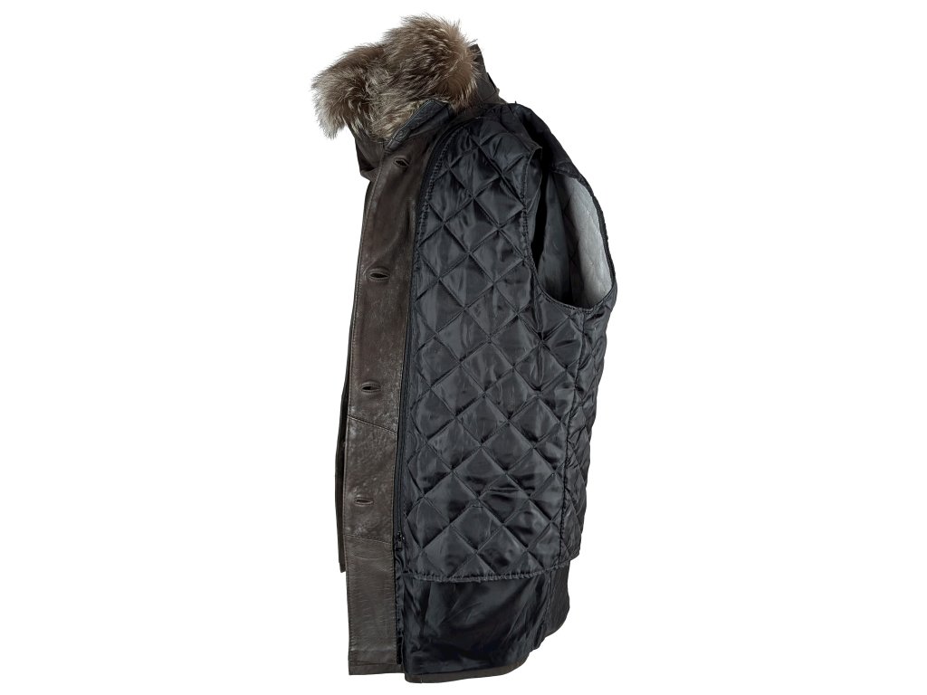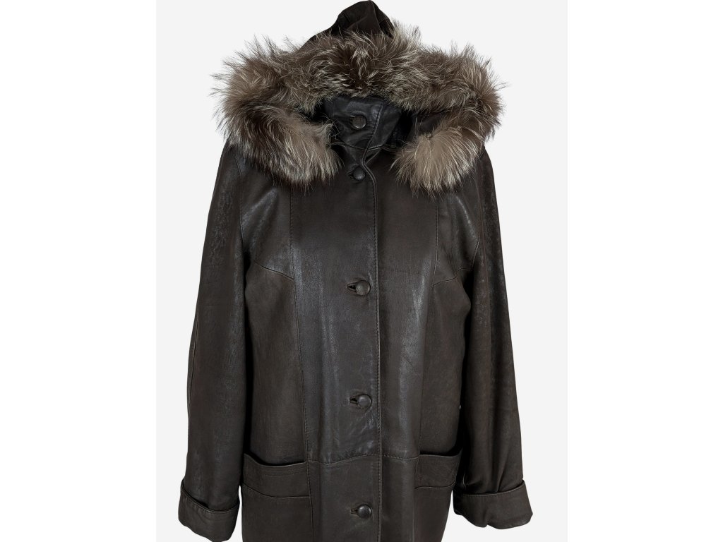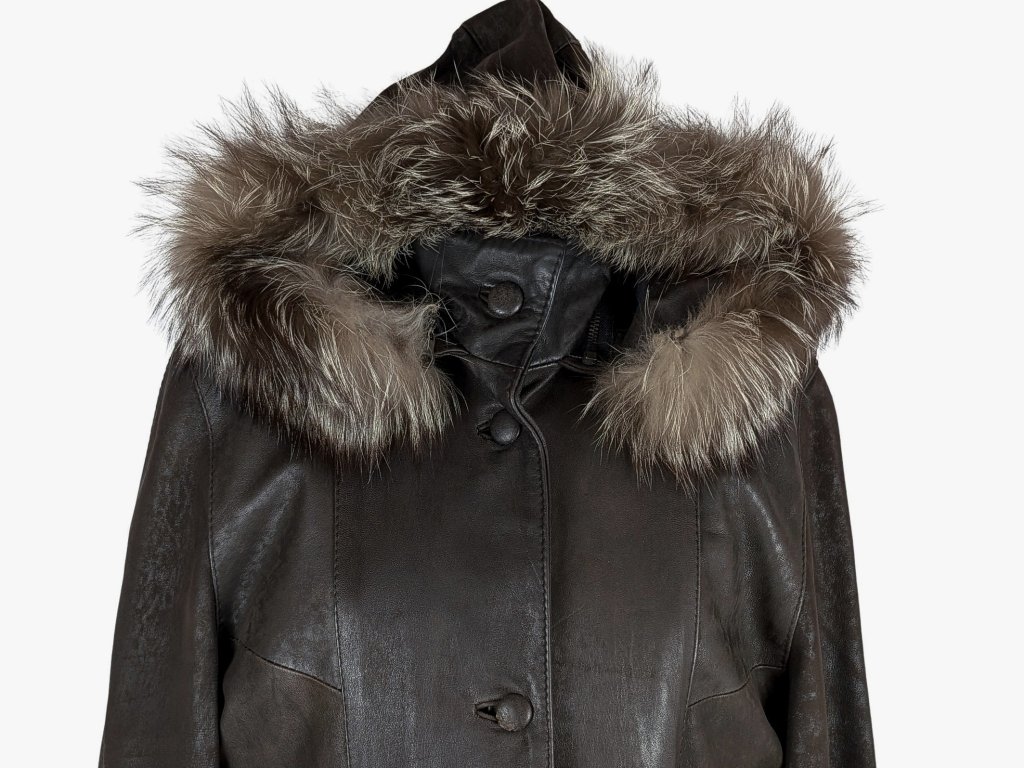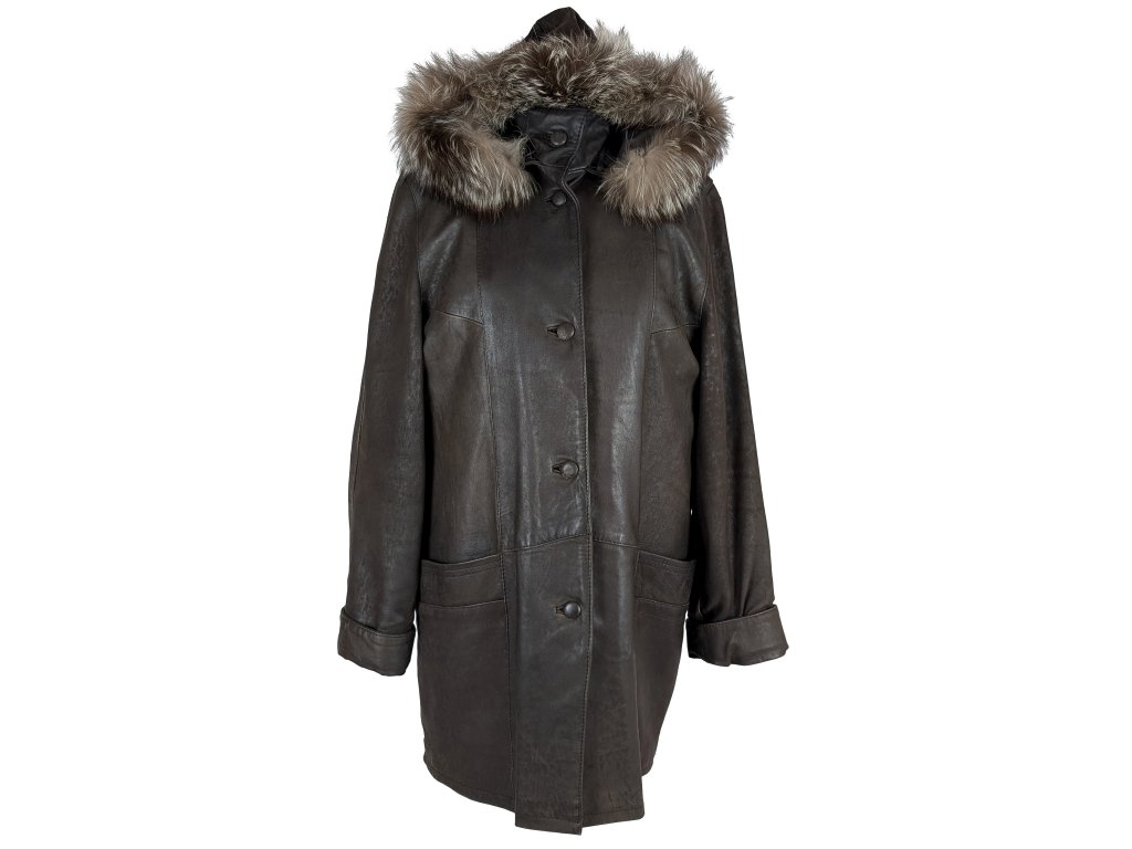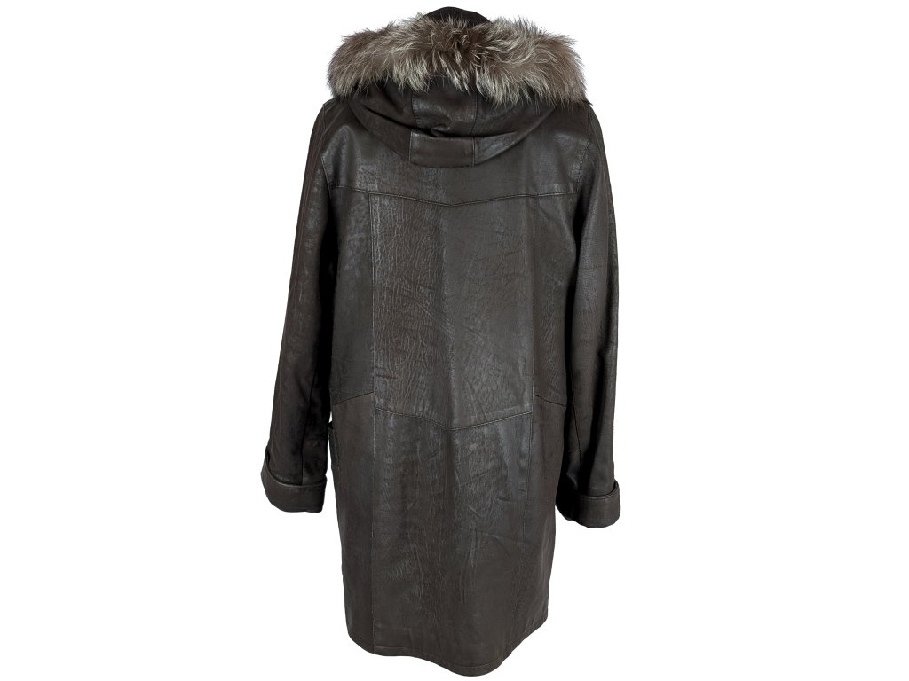 KOŽENÝ dámský kabát s kapucí s pravou kožešinou, odnímatelnou vložkou 44