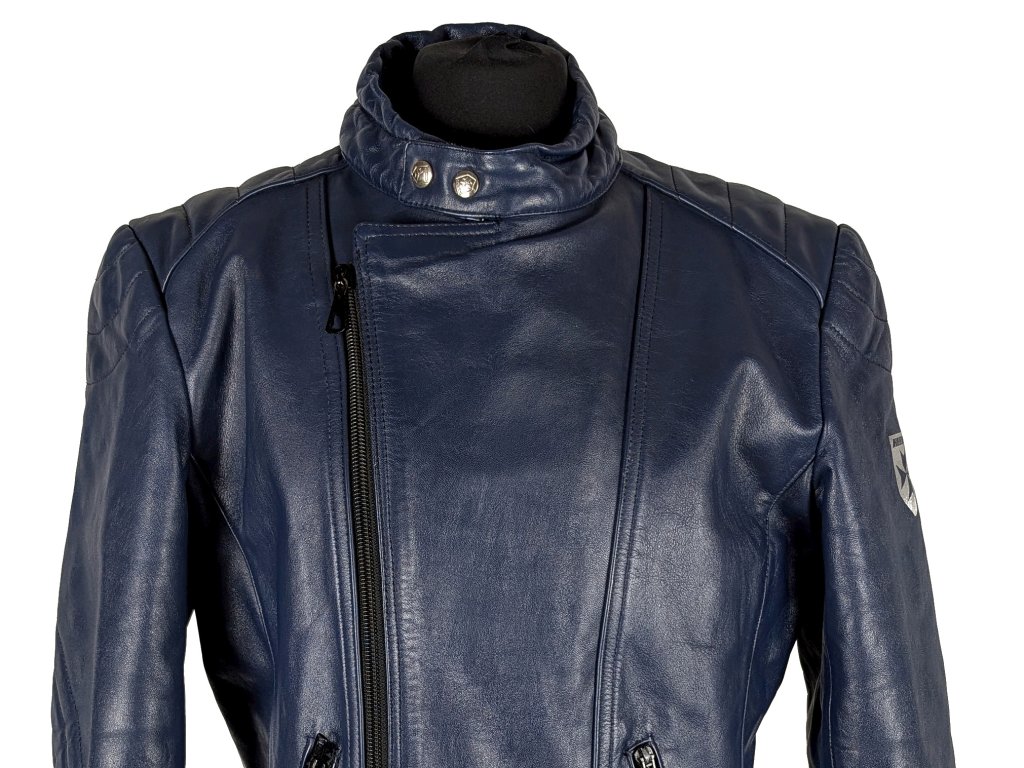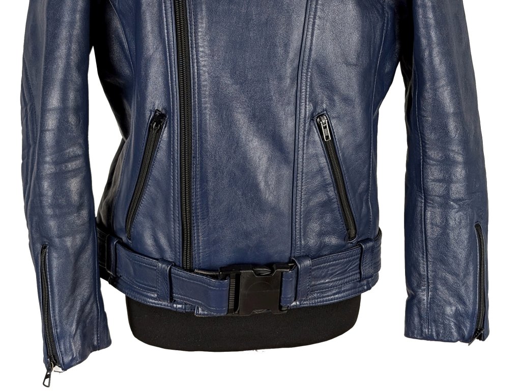 KOŽENÝ dámský modrý zateplený křivák s páskem Harro M