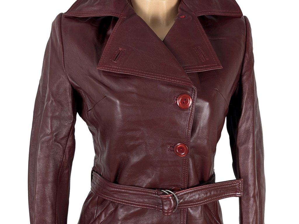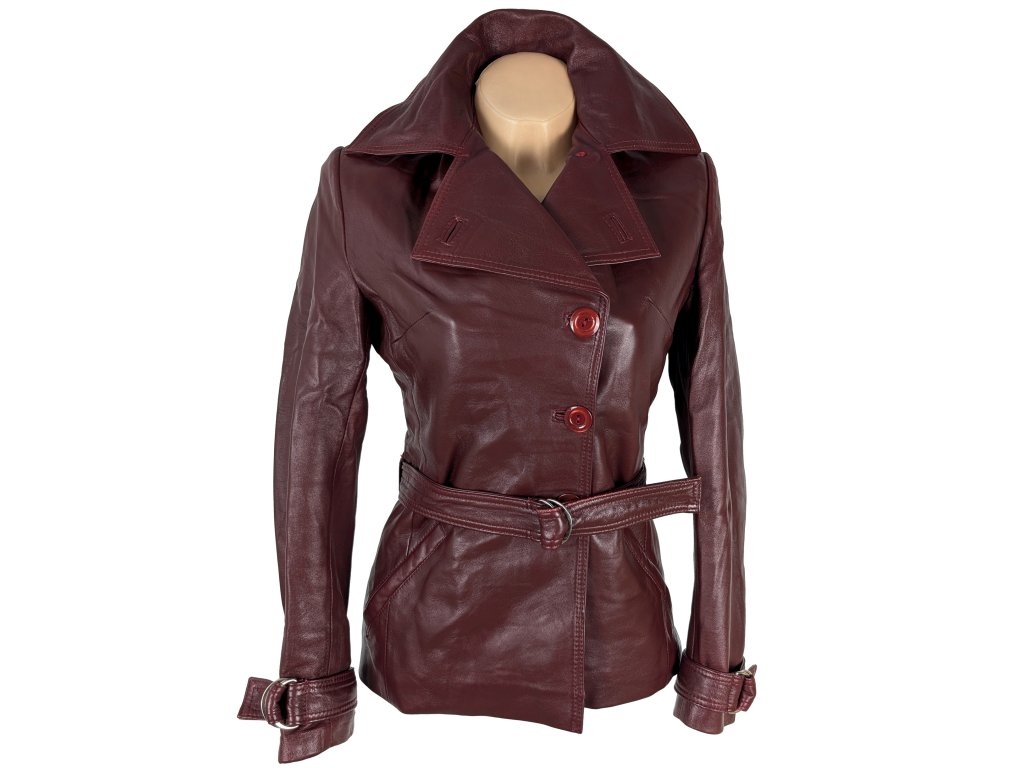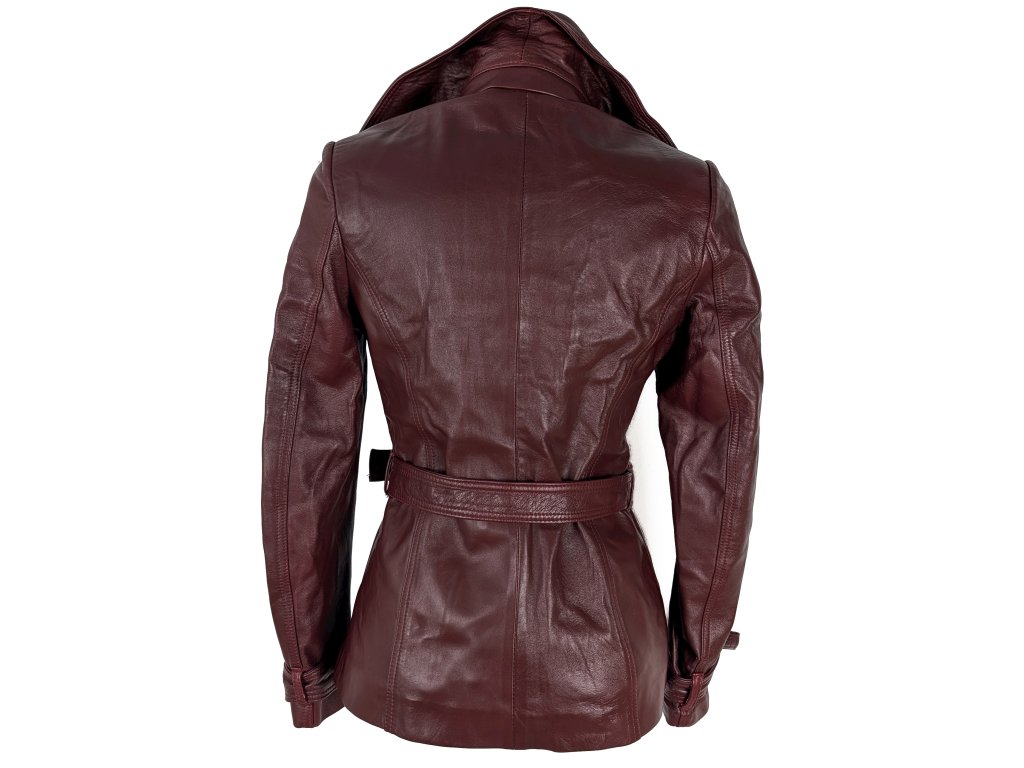 KOŽENÝ dámský vínový kabátek s páskem La Force S