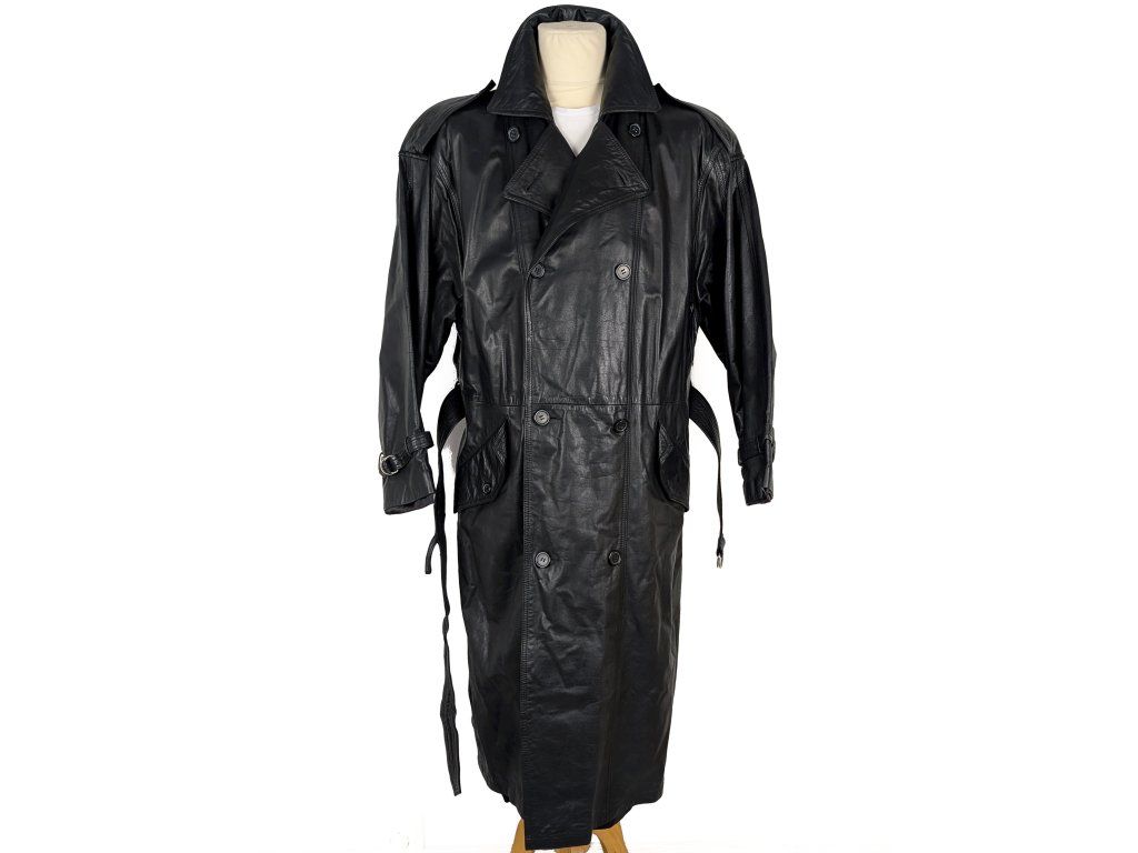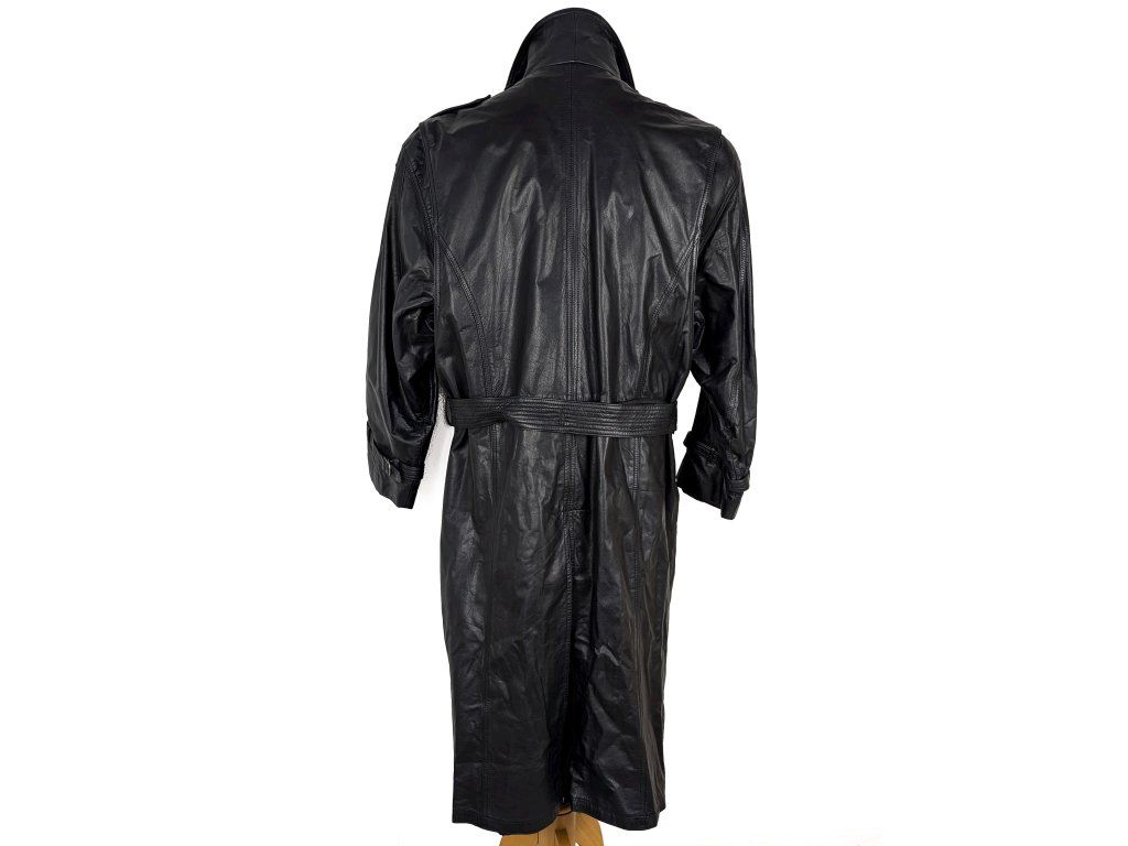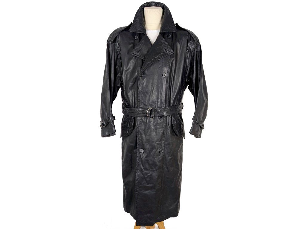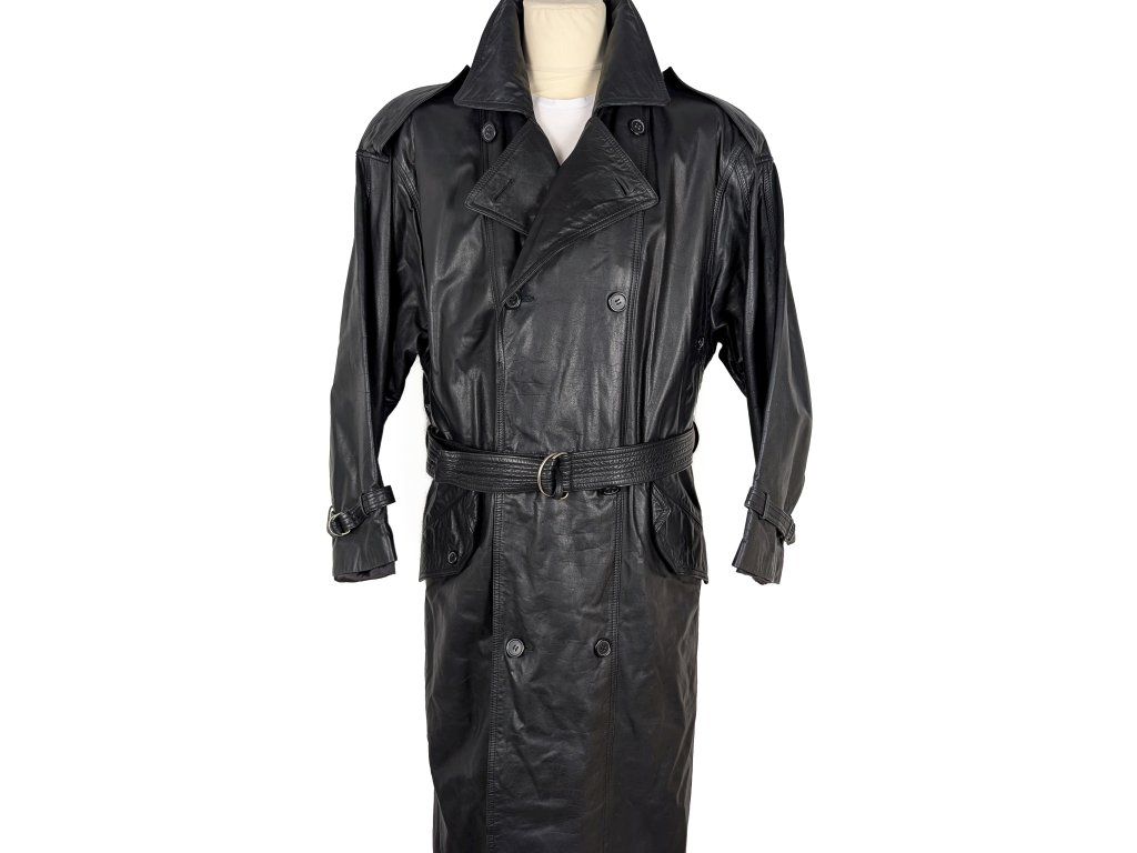 KOŽENÝ pánský černý dlouhý kabát s páskem Maddox 52
