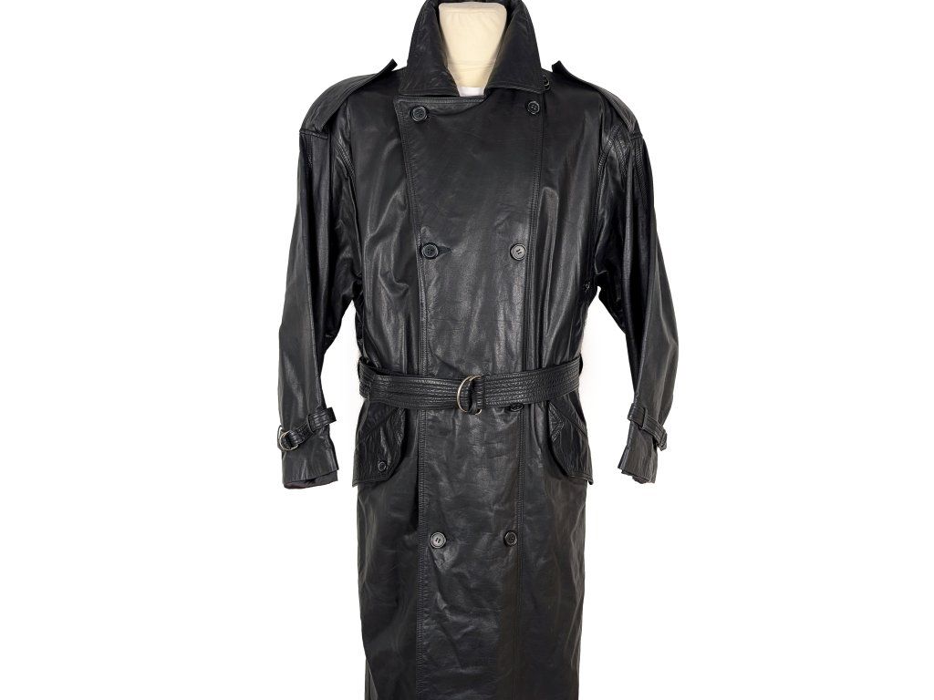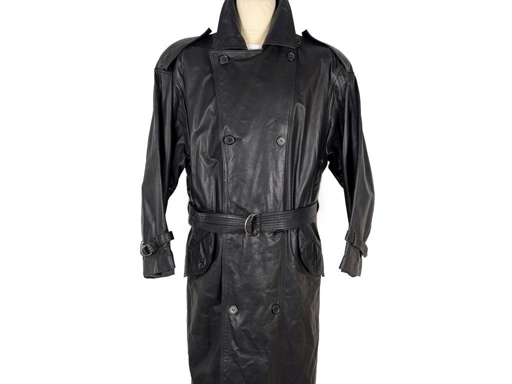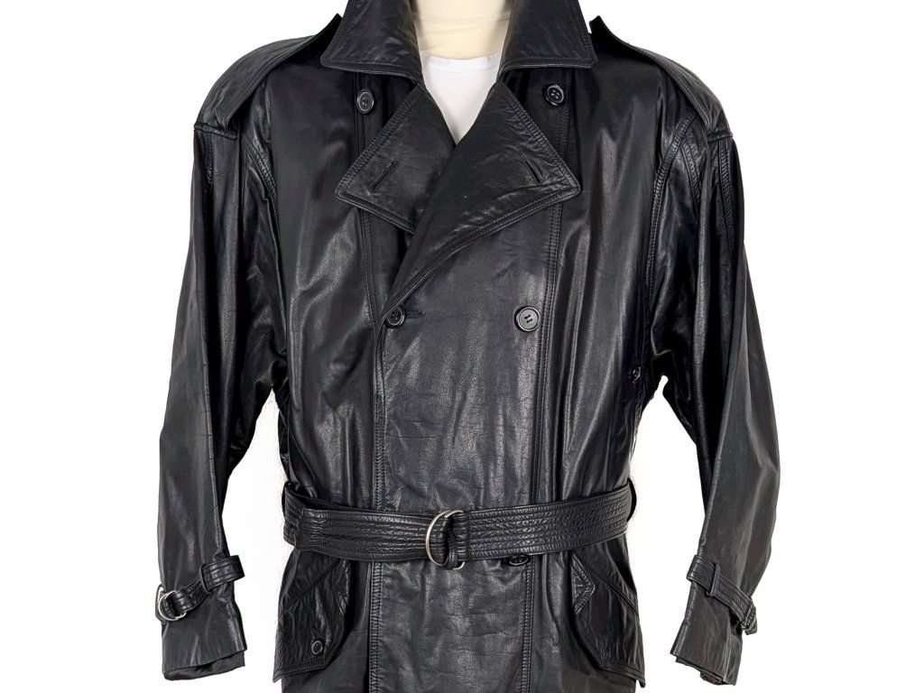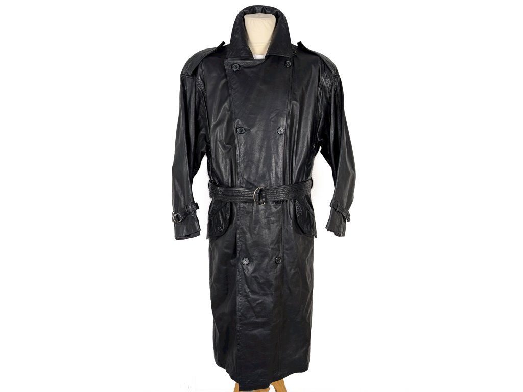 KOŽENÝ pánský černý dlouhý kabát s páskem Maddox 52