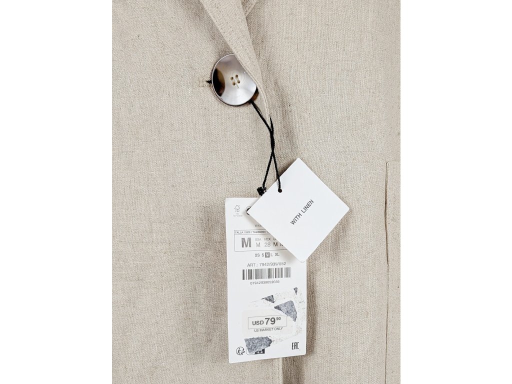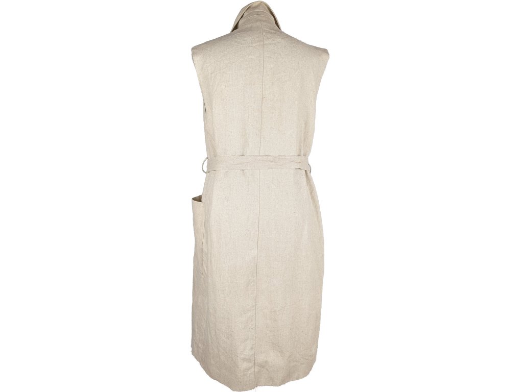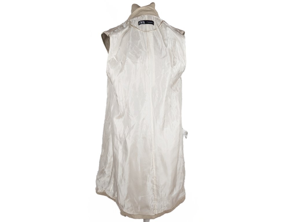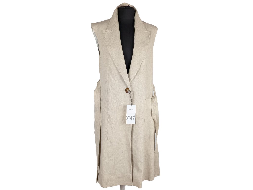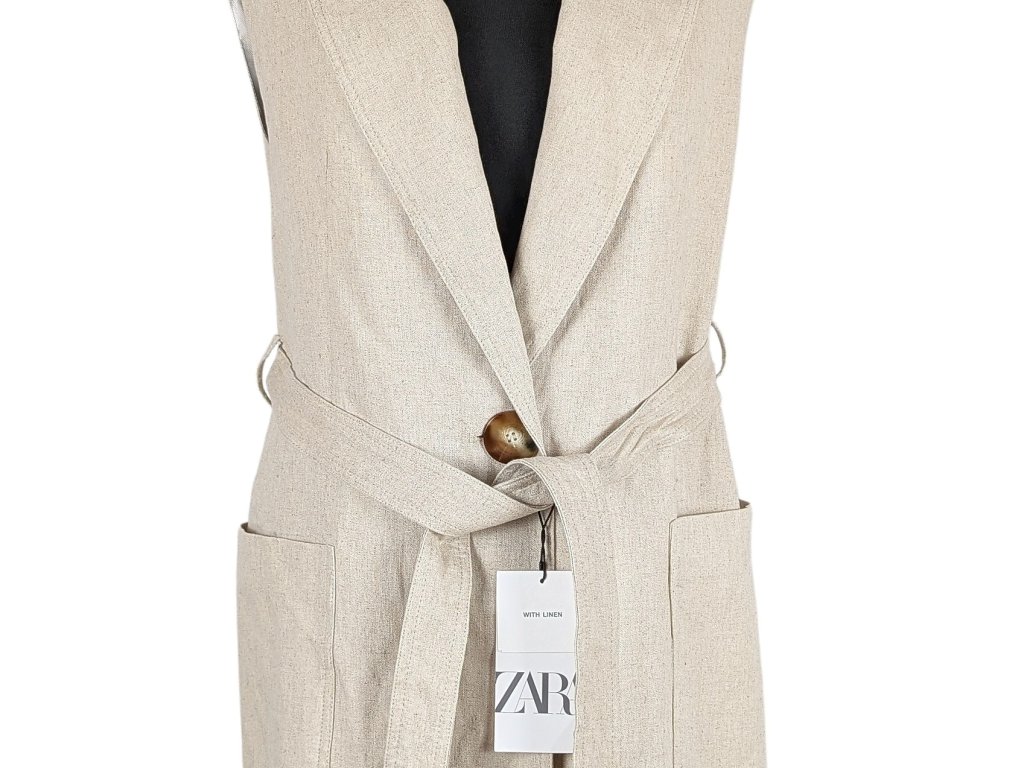 Lněná dámská béžová dlouhá vesta s páskem ZARA M