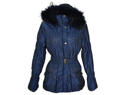 Dámský modrý zimní kabát s kapucí HANNAH 38 100% polyester, kapuce napevno, odnímatelná kožešina Prsa: 55,5 cm (111 cm obvod) Pas: 50 cm (100...