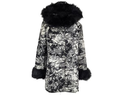 Vlněný (44%) dámský černobílý zimní kabát Odema 40 44% vlna, 42% akryl, 14% polyamid Zimní - zateplený Prsa: 50 cm (100 cm obvod) Pas: 49 cm (98 cm...
