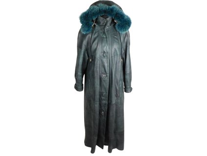 Kožený dlouhý dámský tónovaný zelený kabát s kapucí a pravou kožešinou KTV Velikost 42 Odnimatelná kapuce na zip Zapínání na knoflíky Měkká ovčí kůže...