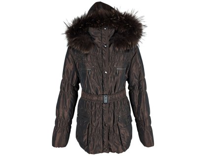 Dámský hnědý prošívaný kabát s kapucí s pravou kožešinou Anorac 42 100% polyester, odnimatelná kapuce s odnimatelnou kožešinou Prsa: 54 cm (108 cm obvod) Pas: 49 cm...