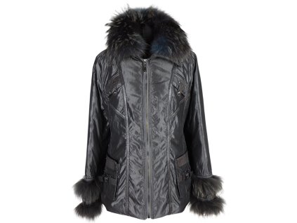 Dámská šedá bunda s pravou kožešinou LUO LUO Velikost M Prsa 51 cm (102 cm obvod) Délka 71 cm Rukáv 64 cm...