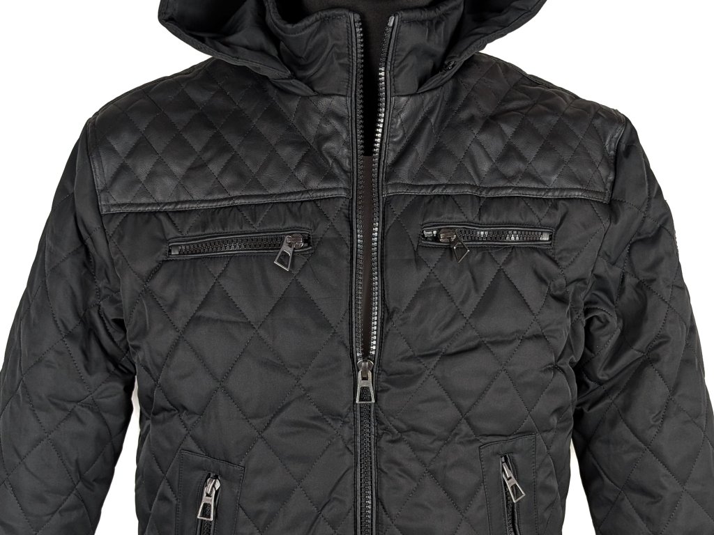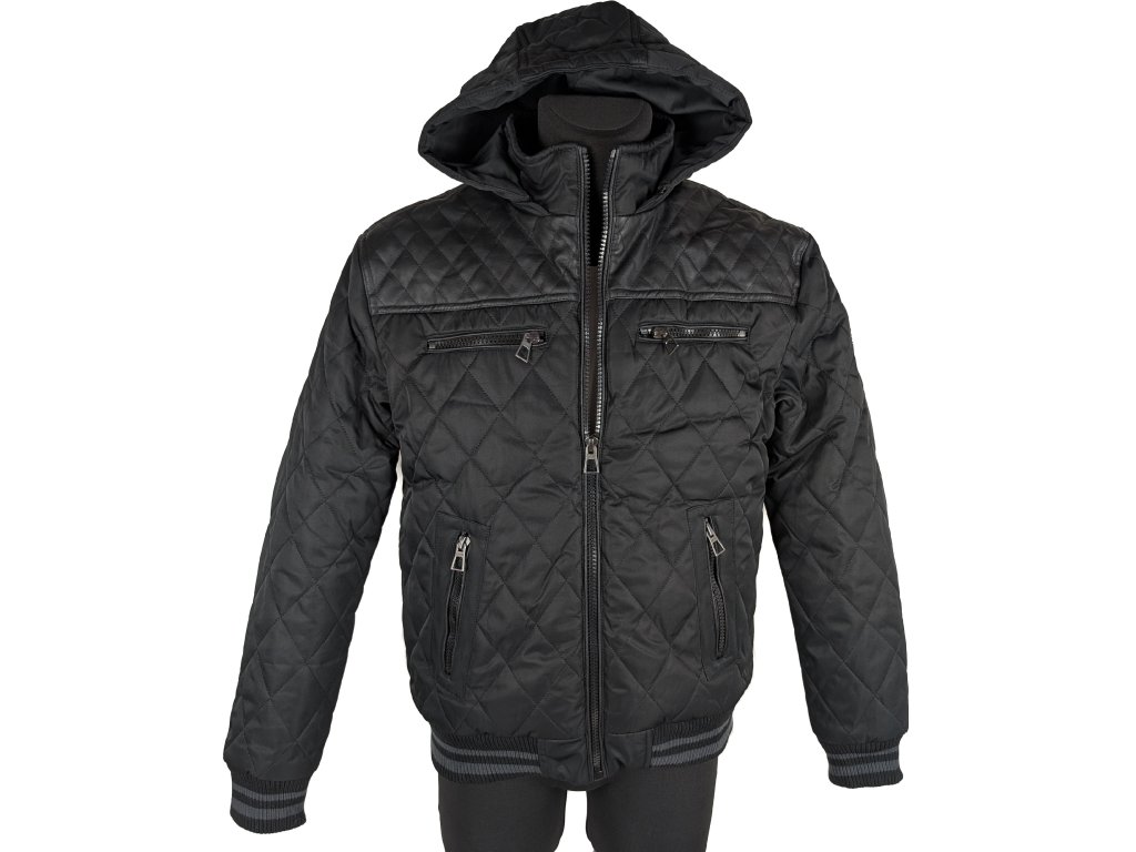 Pánská černá prošívaná bunda na zip s kapucí SMOG S