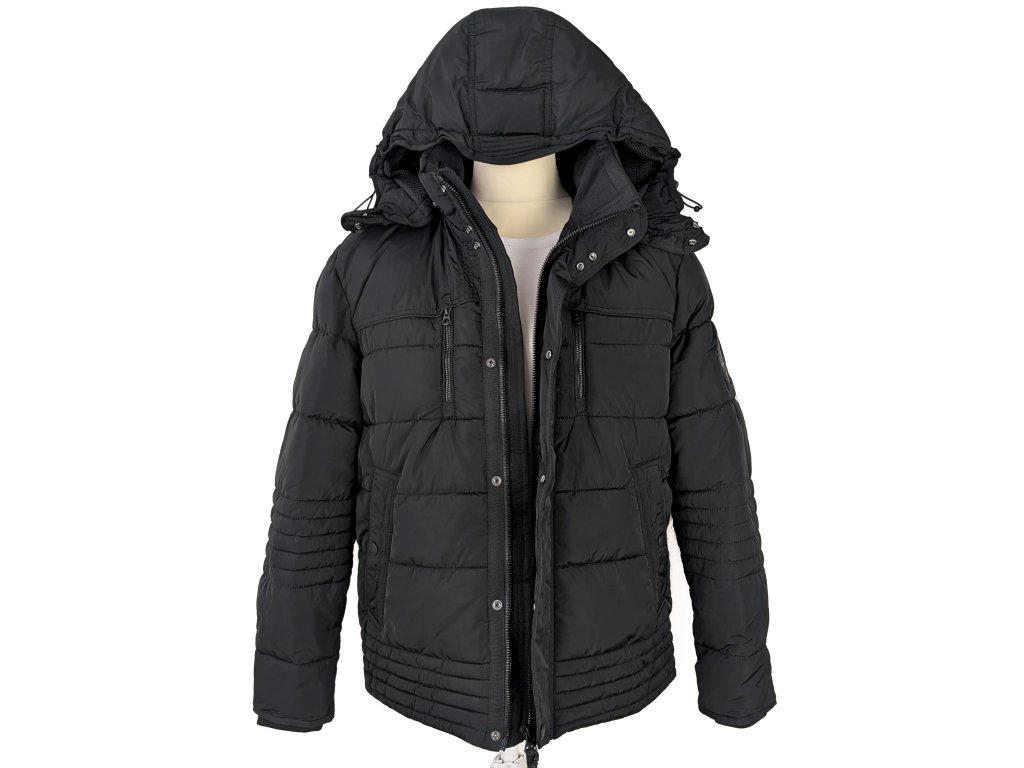 Pánská černá prošívaná bunda s kapucí C&A L