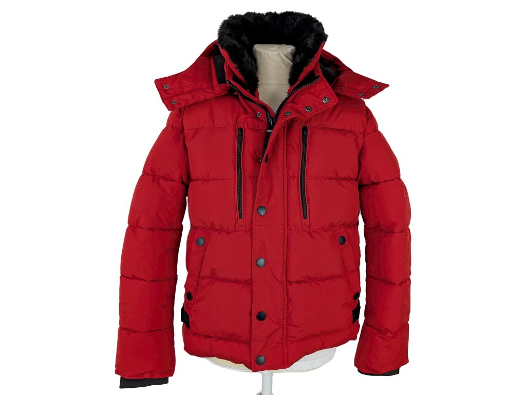 Pánská červená prošívaná zimní bunda s kapucí SMOG M