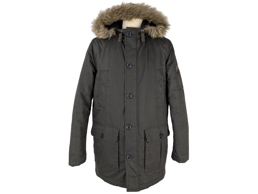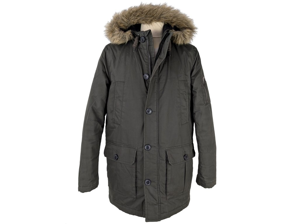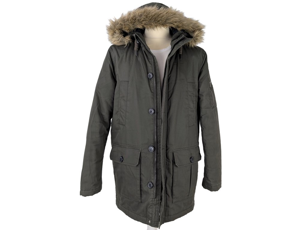 Pánský zimní khaki kabát s kapucí Clockhouse M