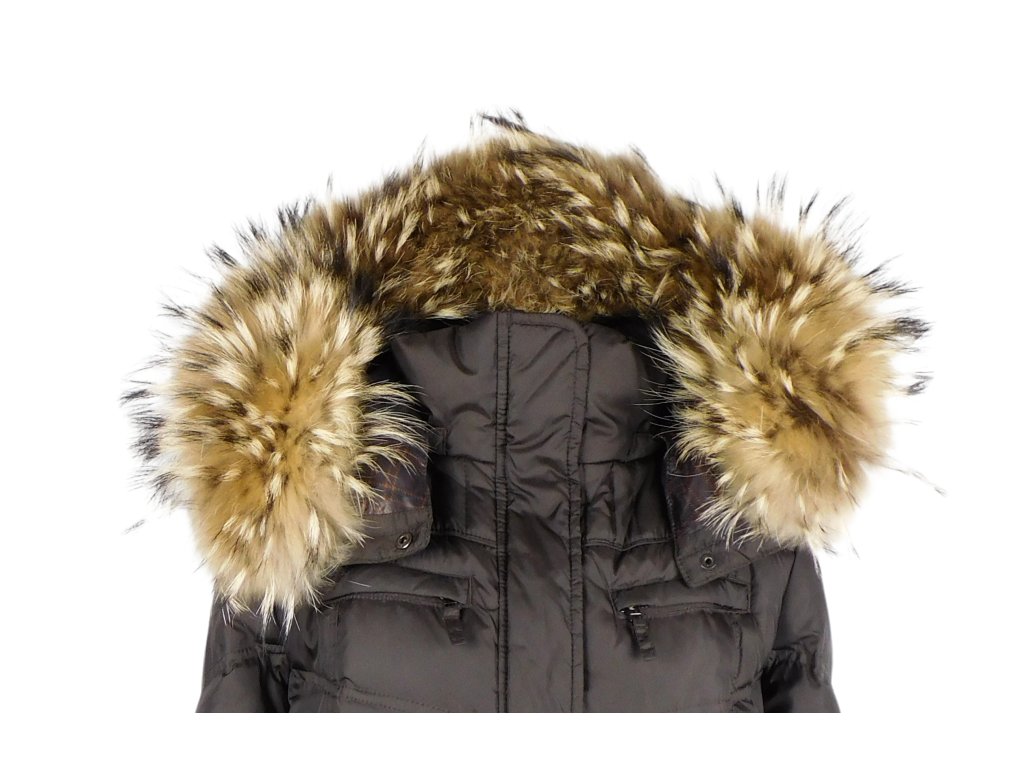 Péřová dámská hnědá bunda s kapucí a bohatou pravou kožešinou s.OLIVER S*
