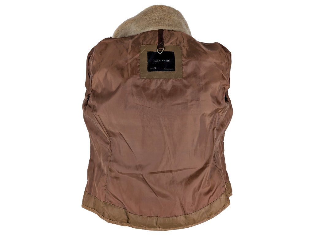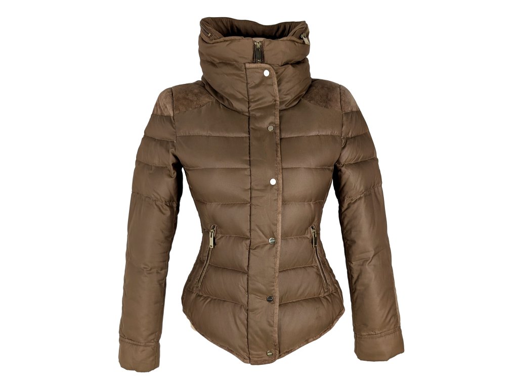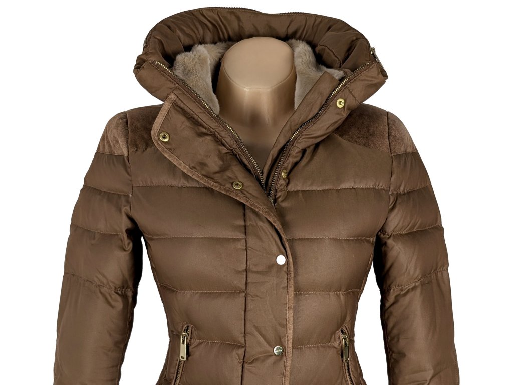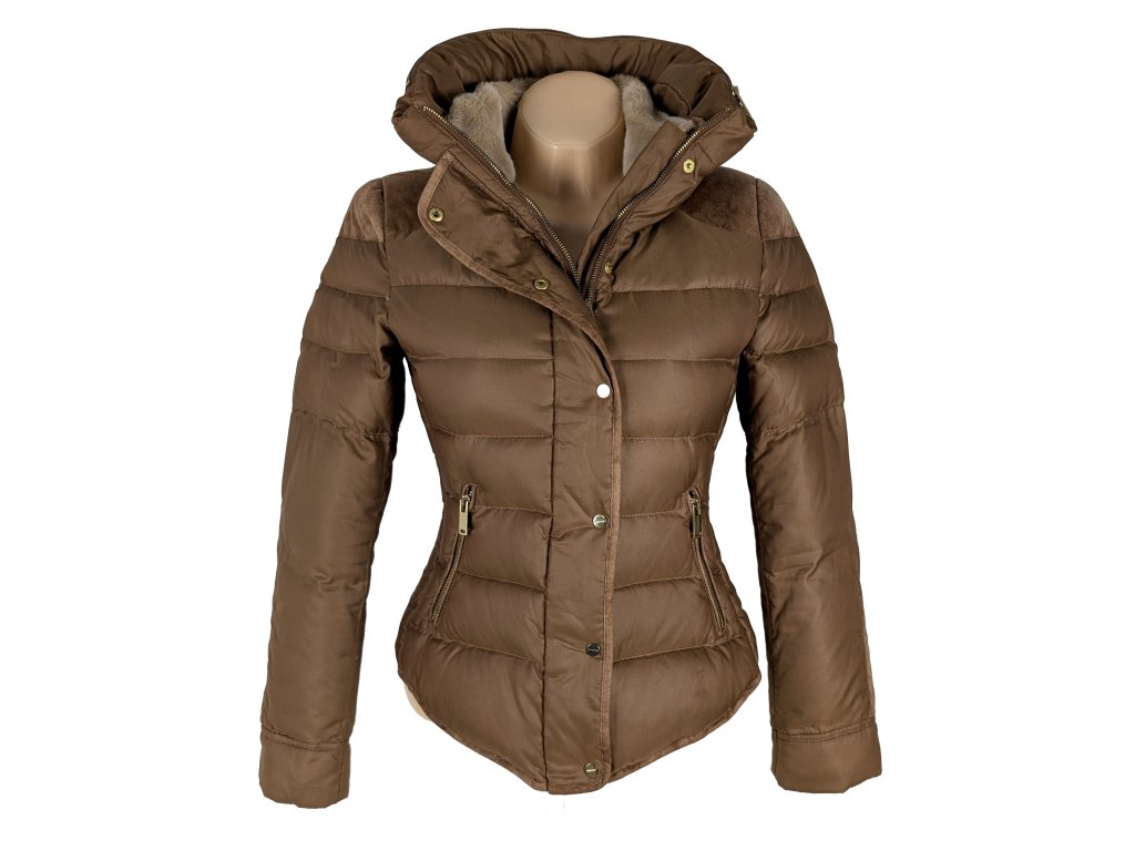 Péřová dámská hnědá prošívaná bunda na zip ZARA S