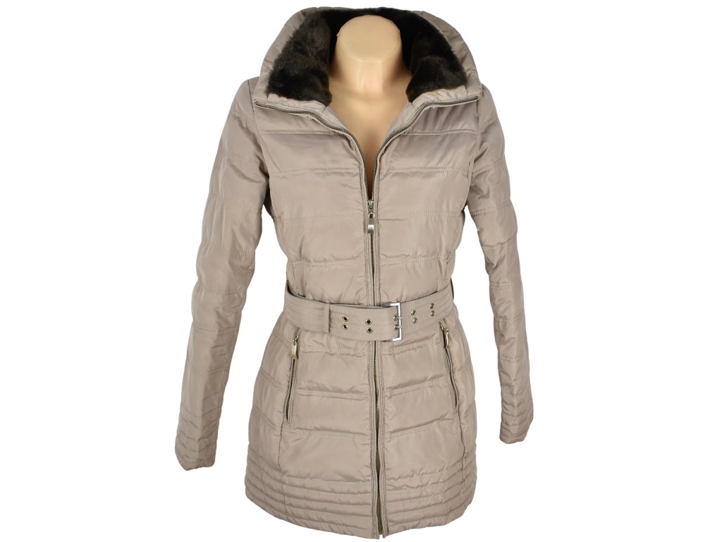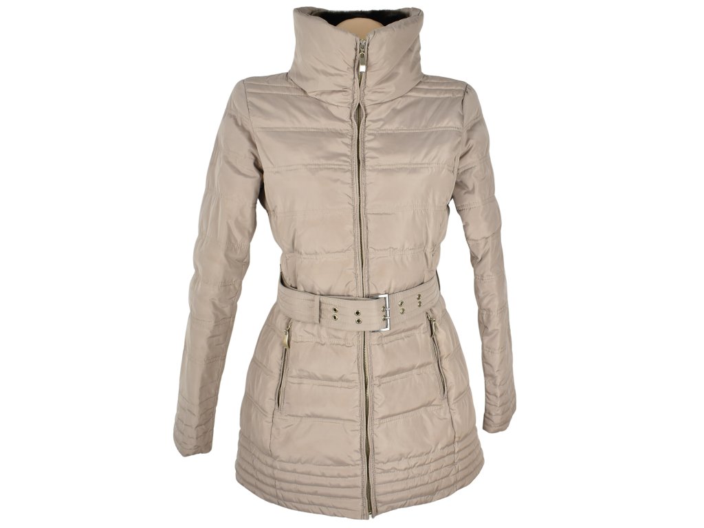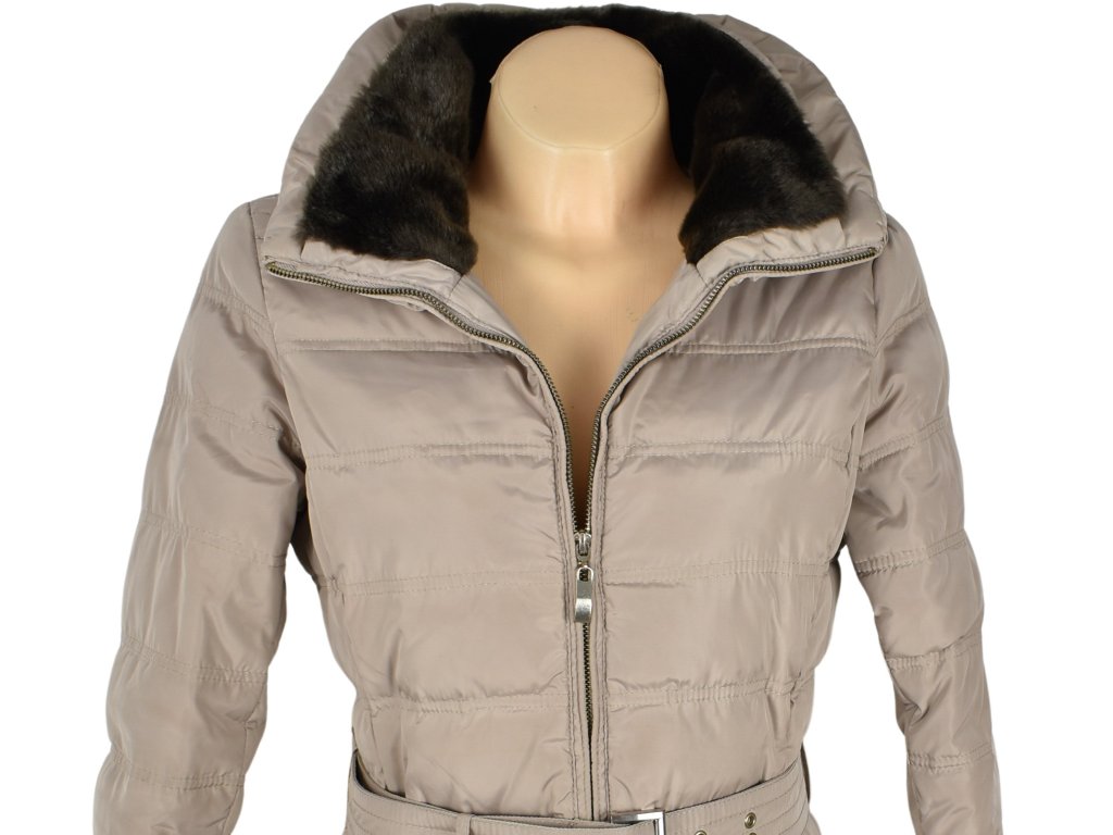 Péřový dámský béžový prošívaný kabát s páskem CAMAIEU 12/40