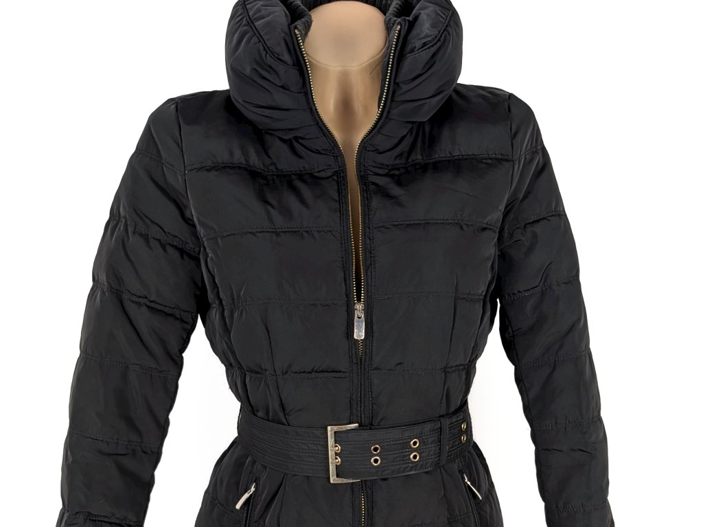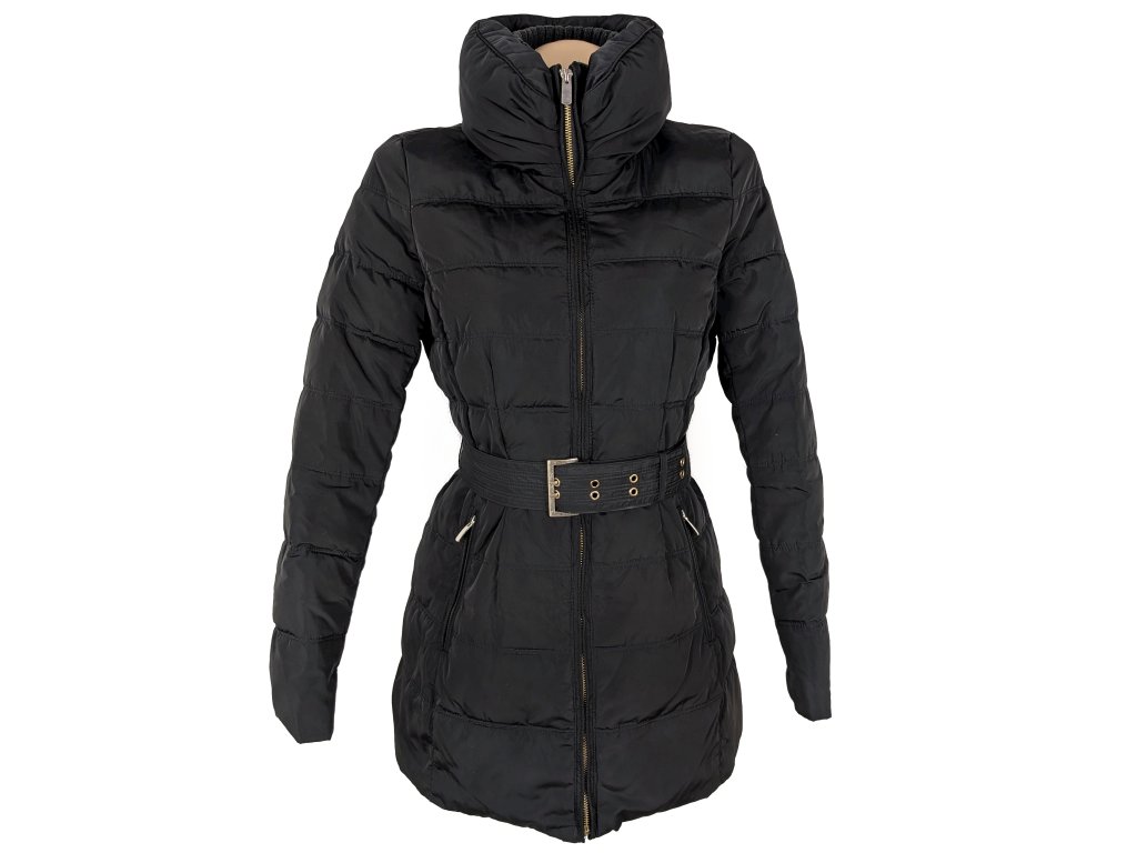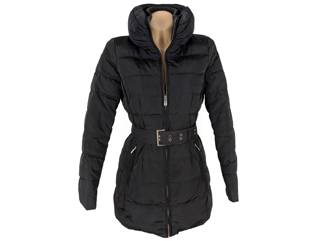 Péřový dámský černý prošívaný kabát s páskem CAMAIEU 12/40