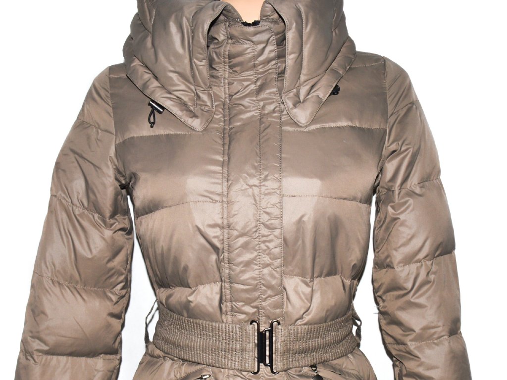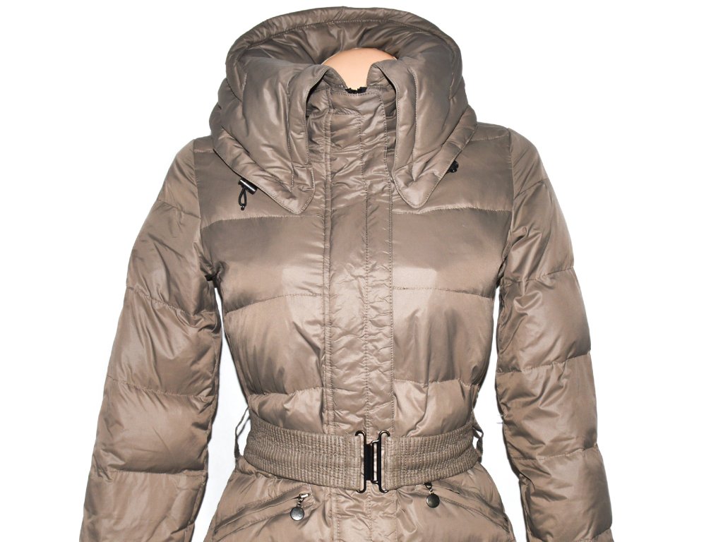 Reserved, Dámský kabát, hnědý péřový kabát s páskem, velikost 36, 100% polyamid, na zip a cvoky
