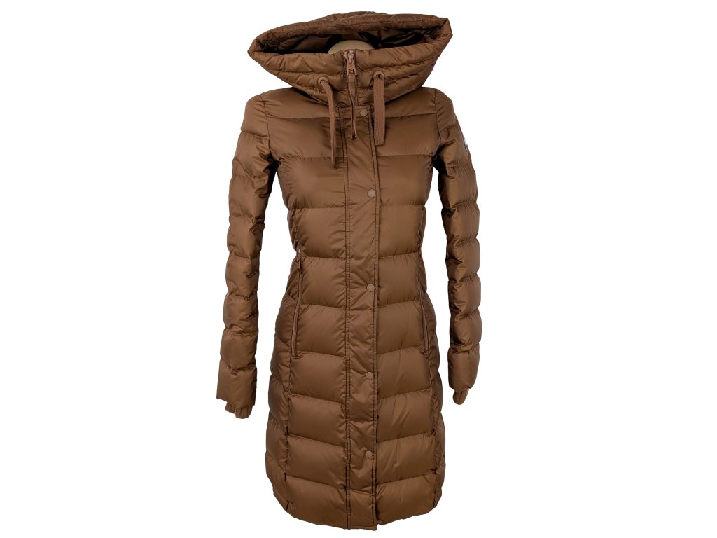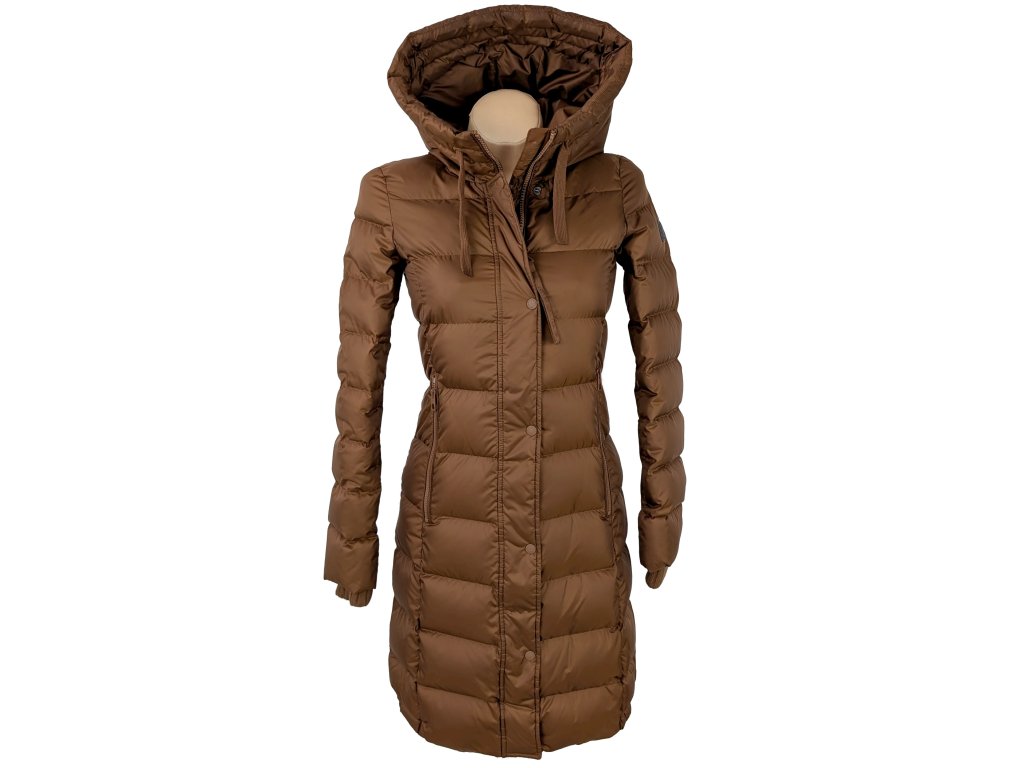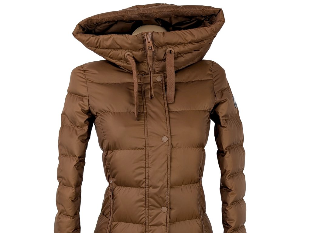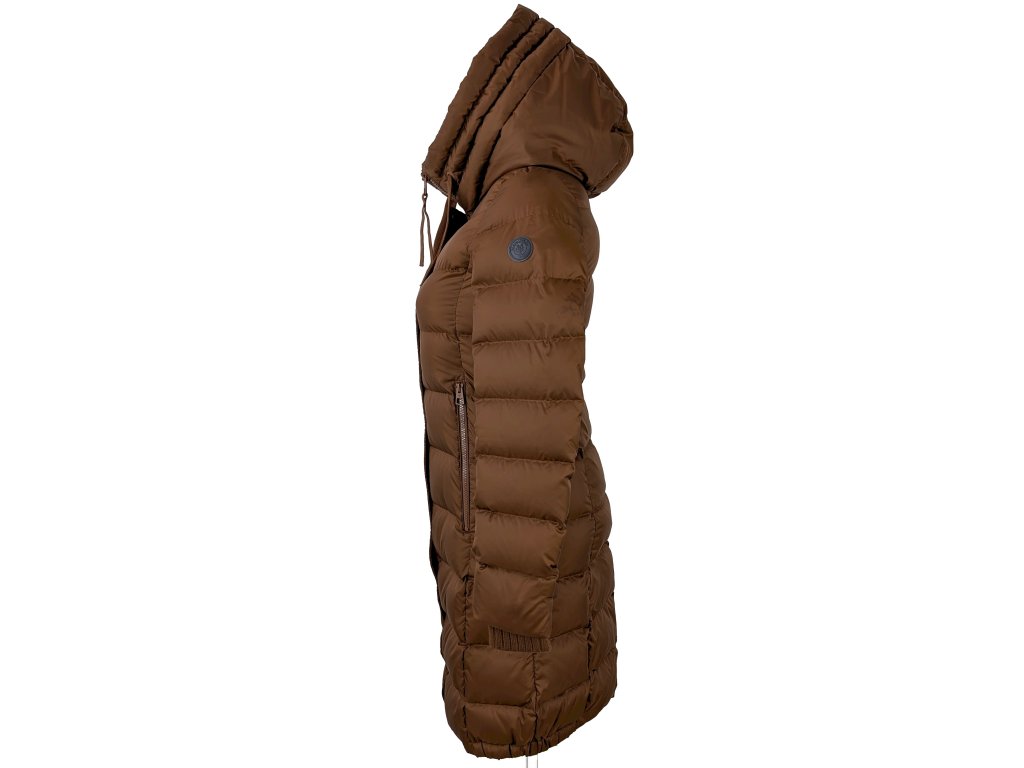 Péřový dámský hnědý prošívaný kabát s kapucí Marc O'Polo XS