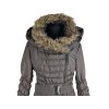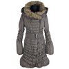 Péřový dámský hnědý kabát s páskem a kapucí Sublevel M