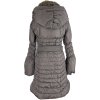 Péřový dámský hnědý prošívaný kabát s páskem a kapucí Sublevel M