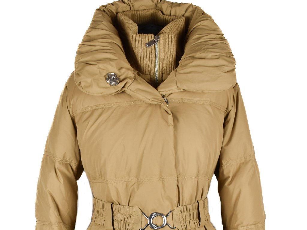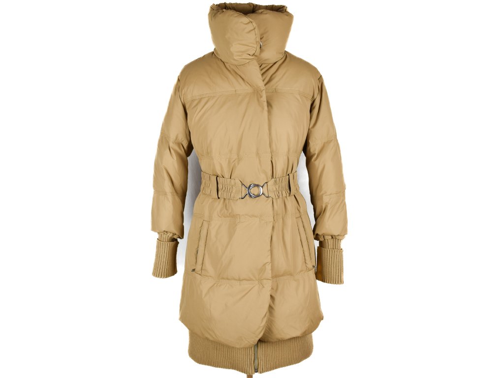 Péřový dámský prošívaný hořčicový kabát s páskem AMISU 34, 36, 42
