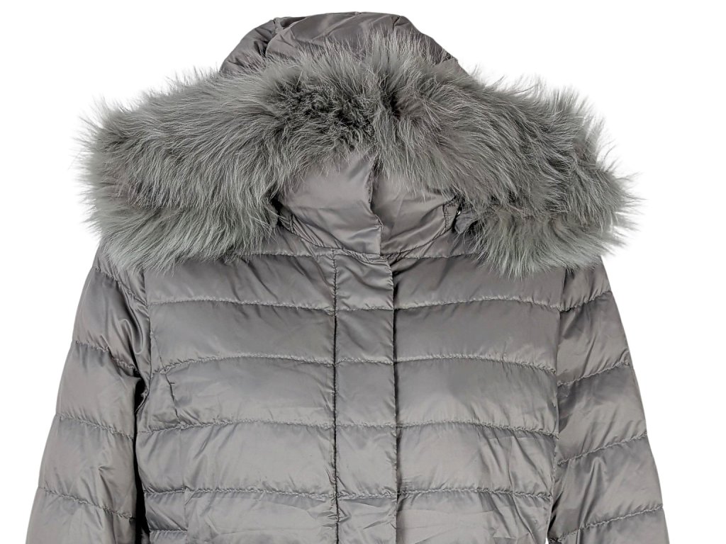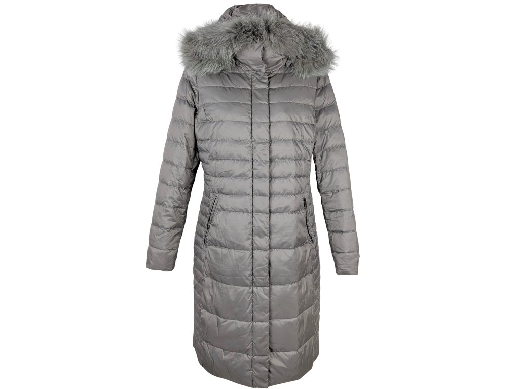 Péřový dámský prošívaný kabát s kapucí s pravou kožešinou Fuchs Schmitt 16/42