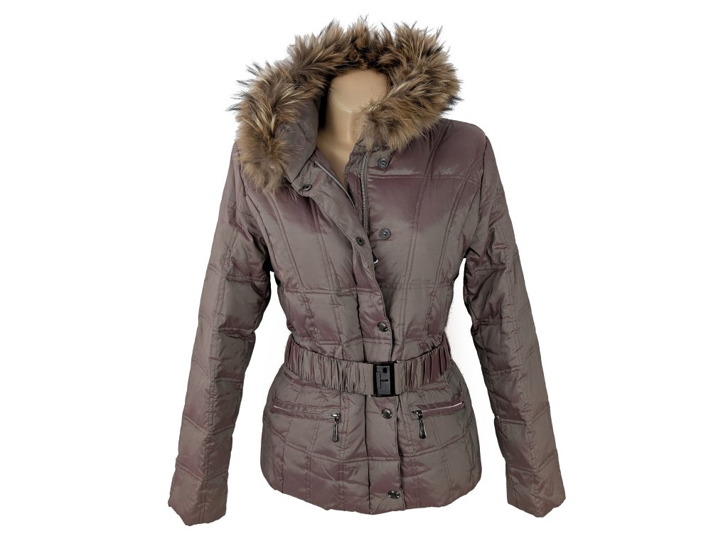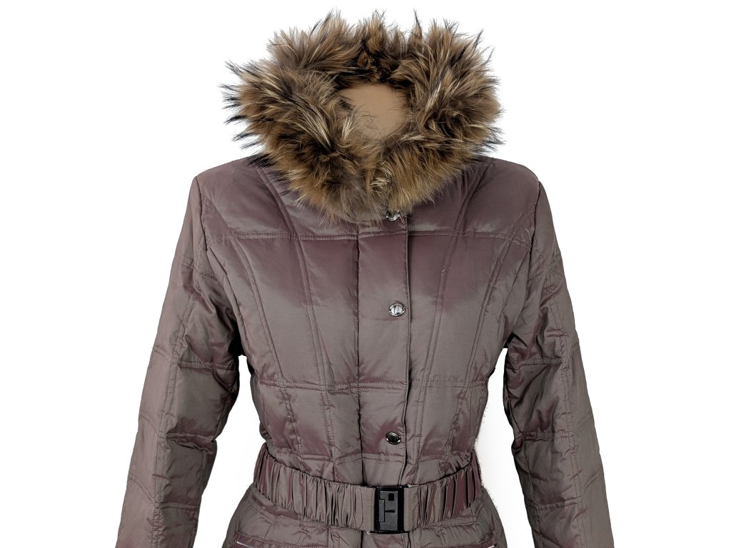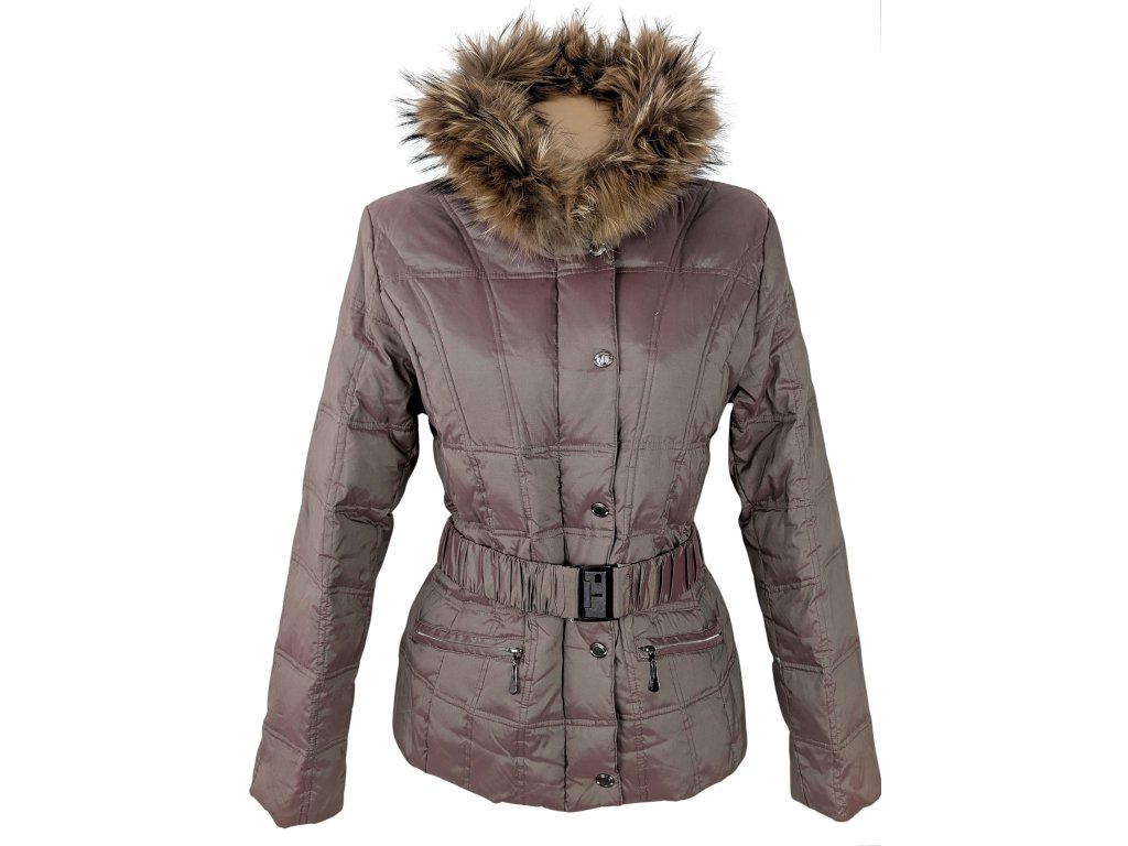 Péřový dámský prošívaný kabát s pravou kožešinou Anorac 40
