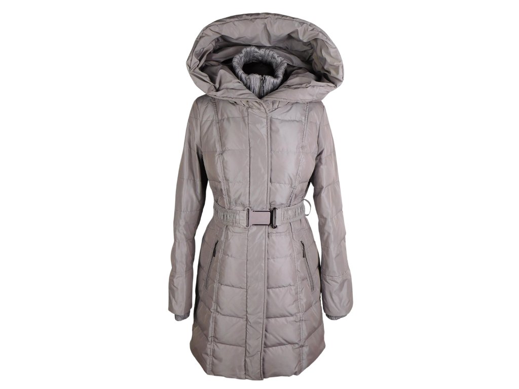 Péřový dámský šedý kabát s kapucí MIRAGE-MV S*
