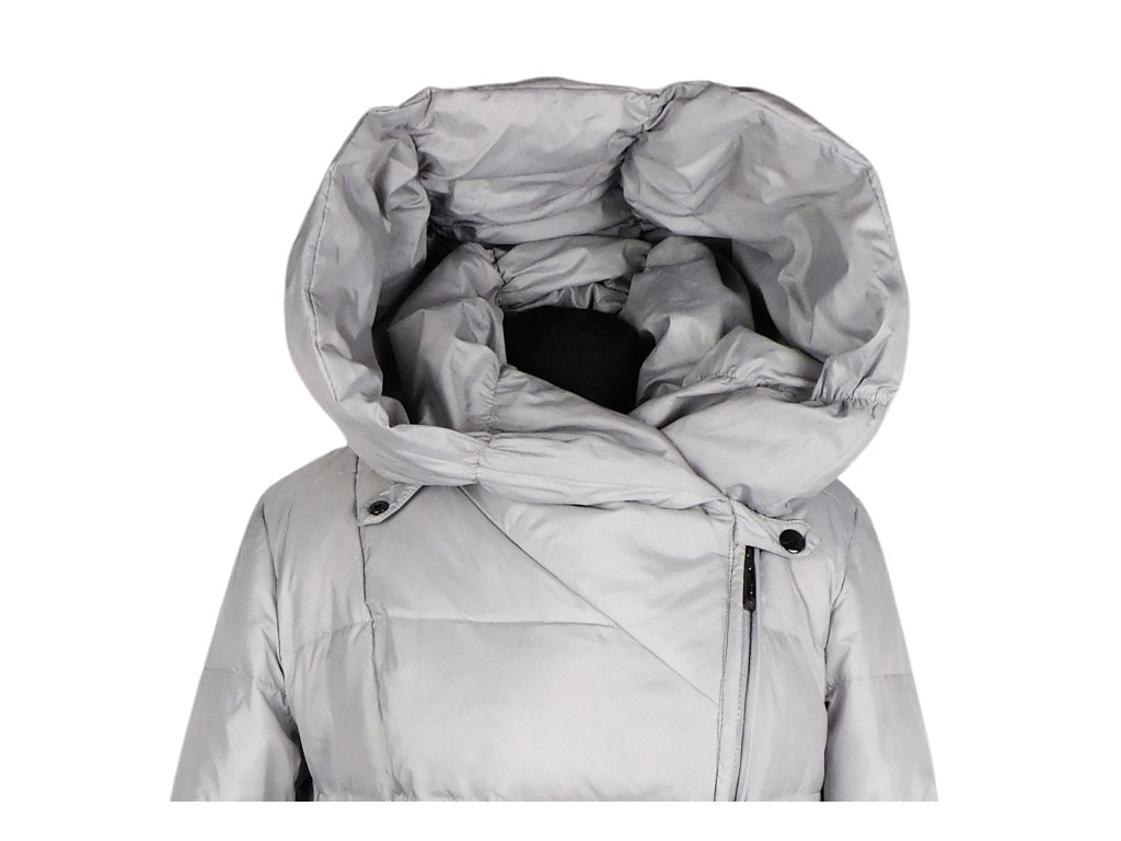 Péřový dámský šedý kabát s kapucí na zip křivák VERALBA