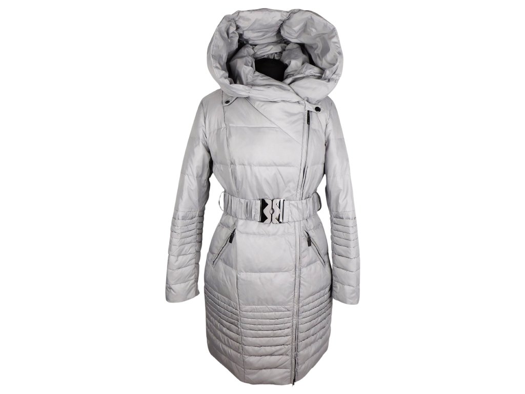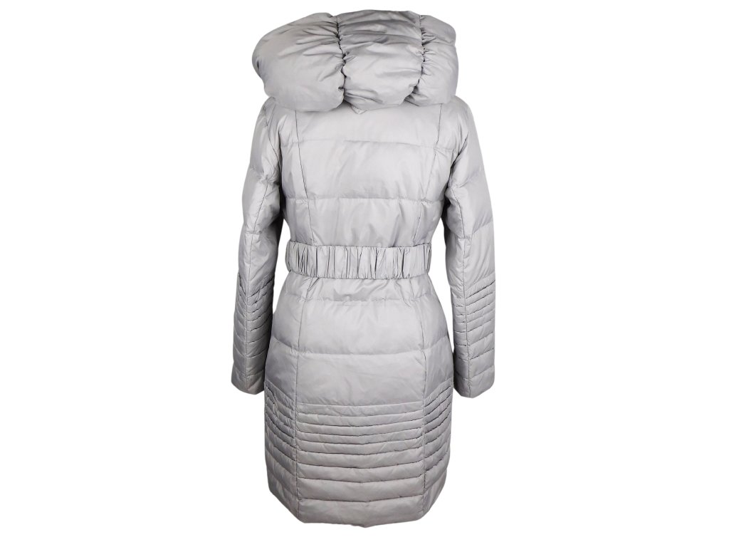 Péřový dámský šedý kabát s kapucí na zip křivák VERALBA M*