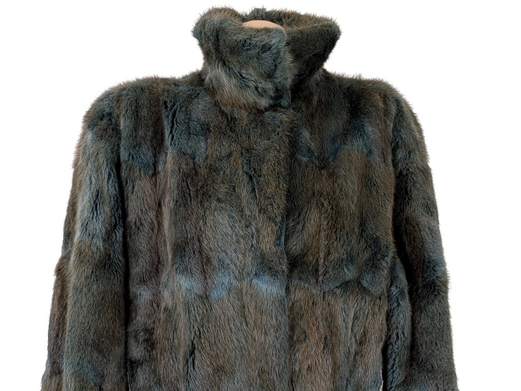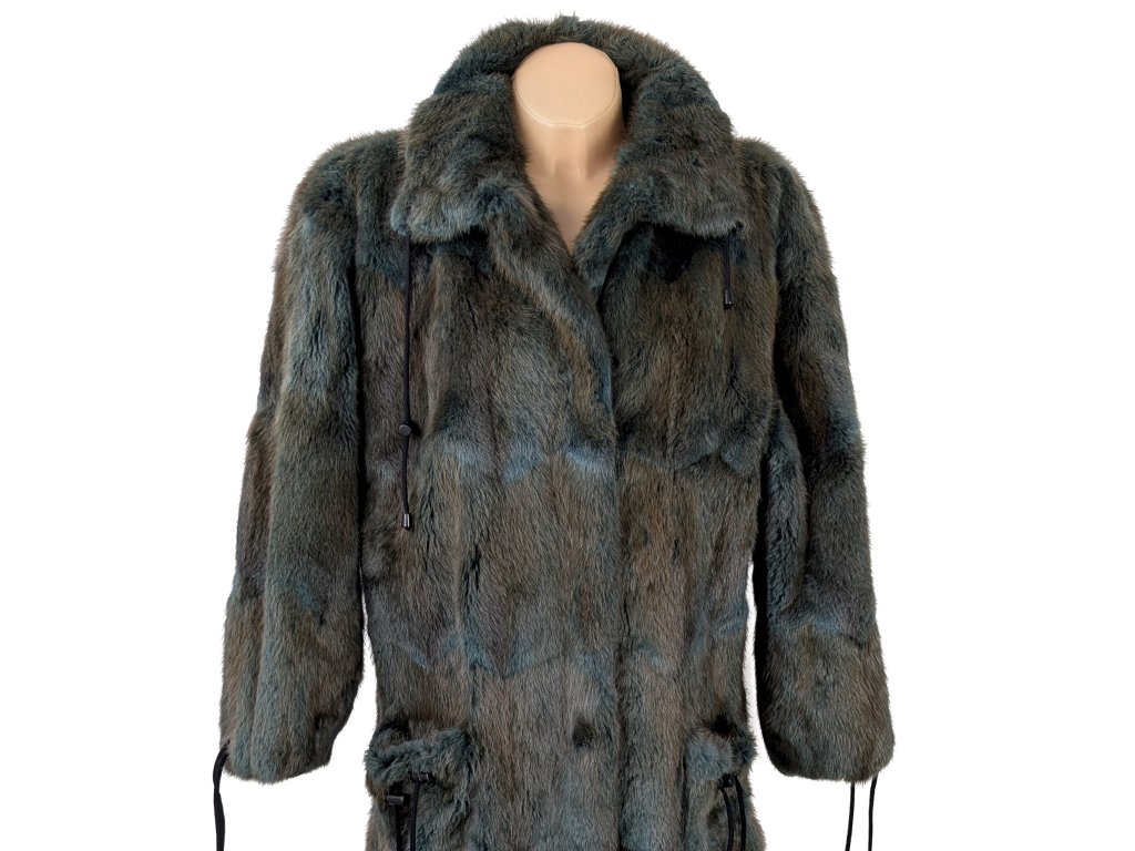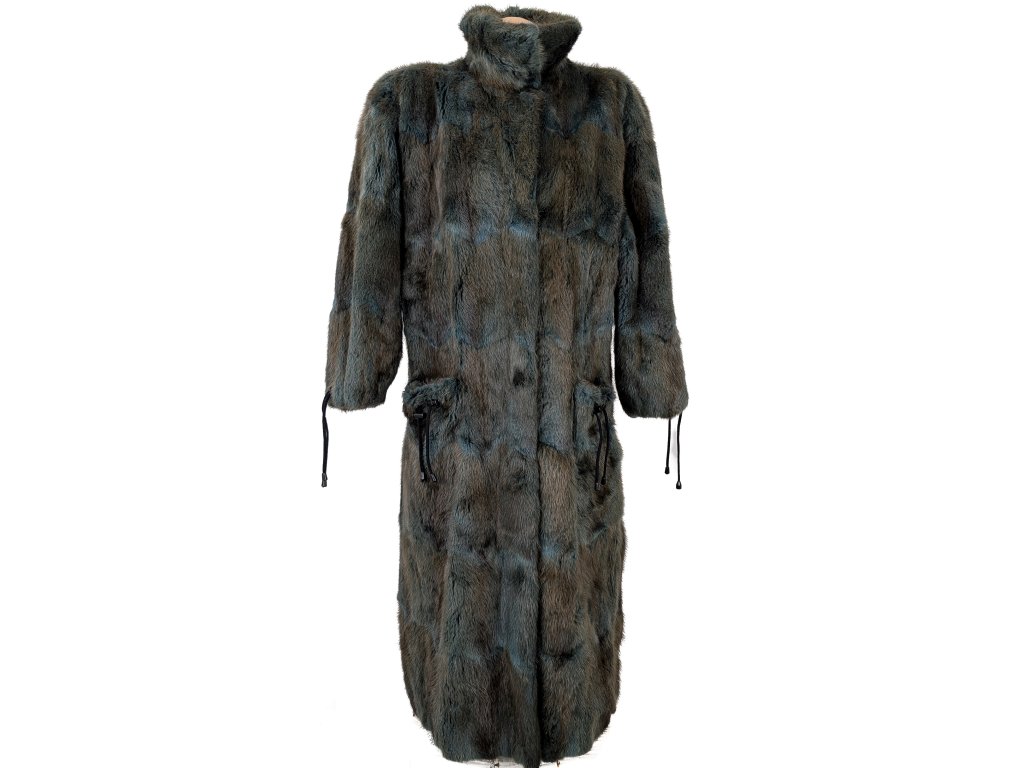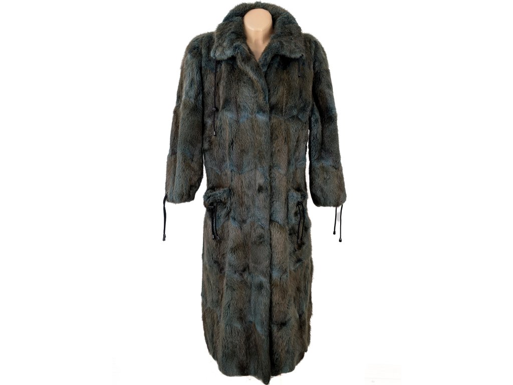 Pravý dámský dlouhý hnědotyrkysový kožich L