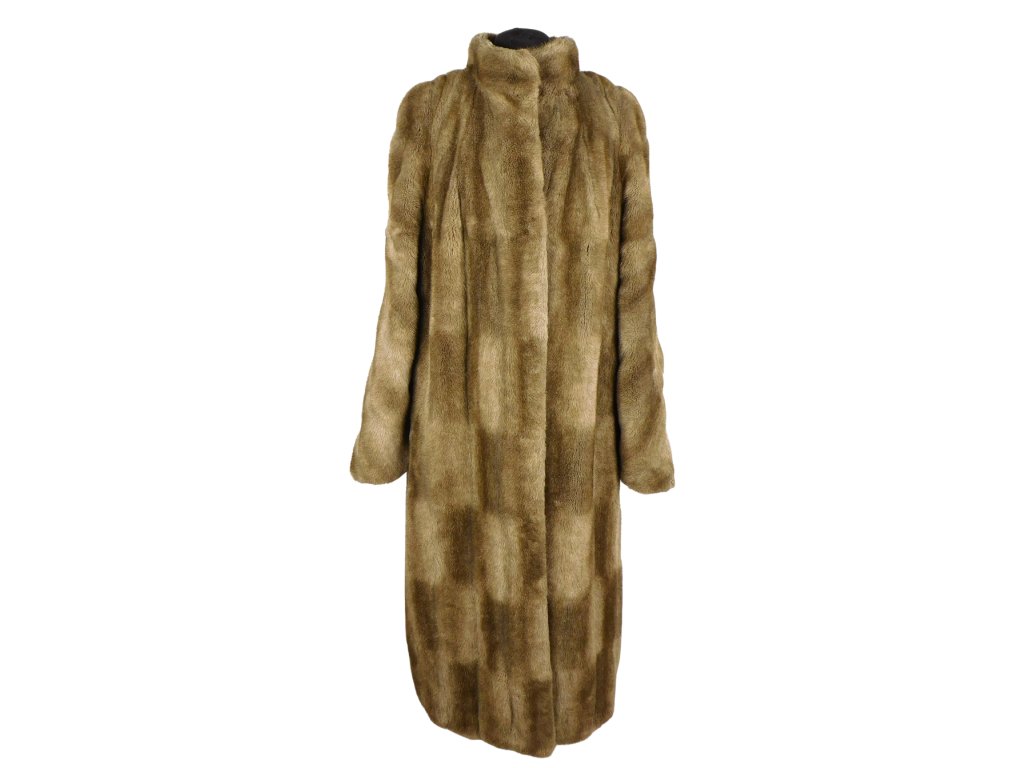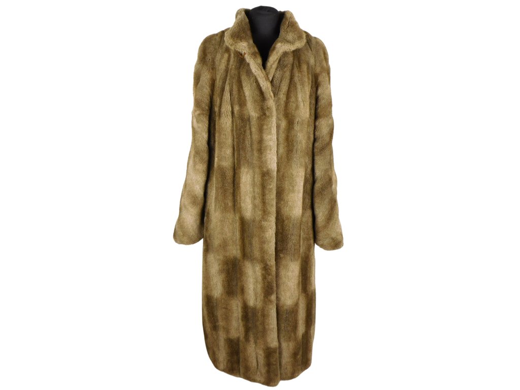 Pravý dámský hnědý dlouhý kožich VZOR HLINSKO V ČECHÁCH