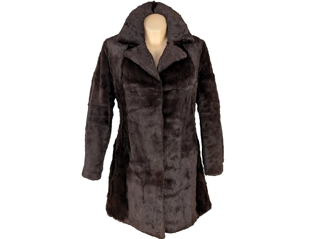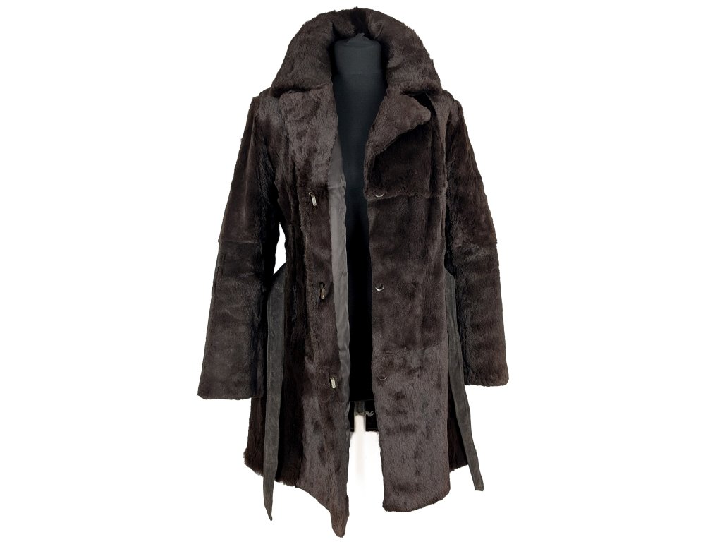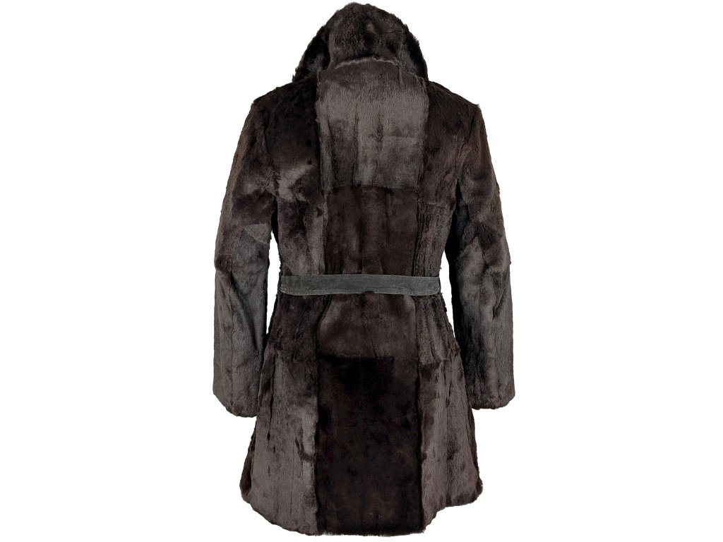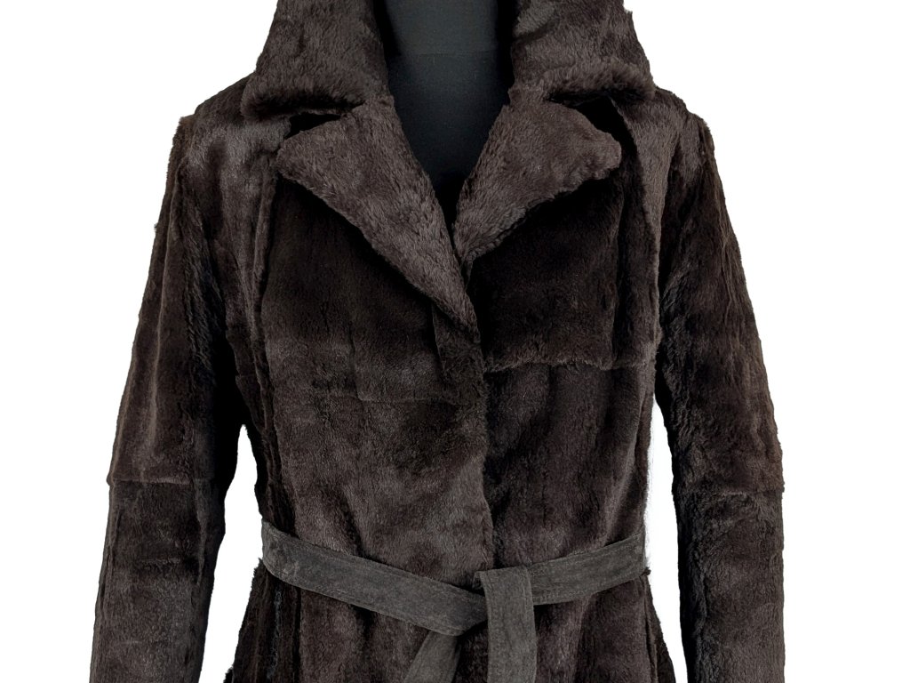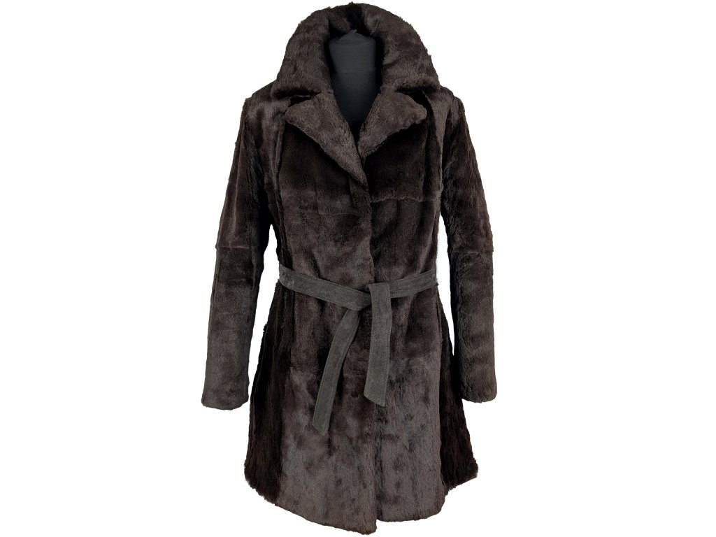 Pravý dámský hnědý kožich s páskem S