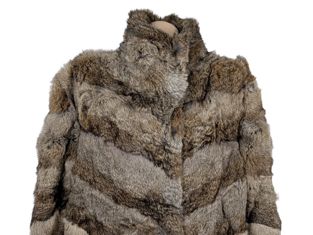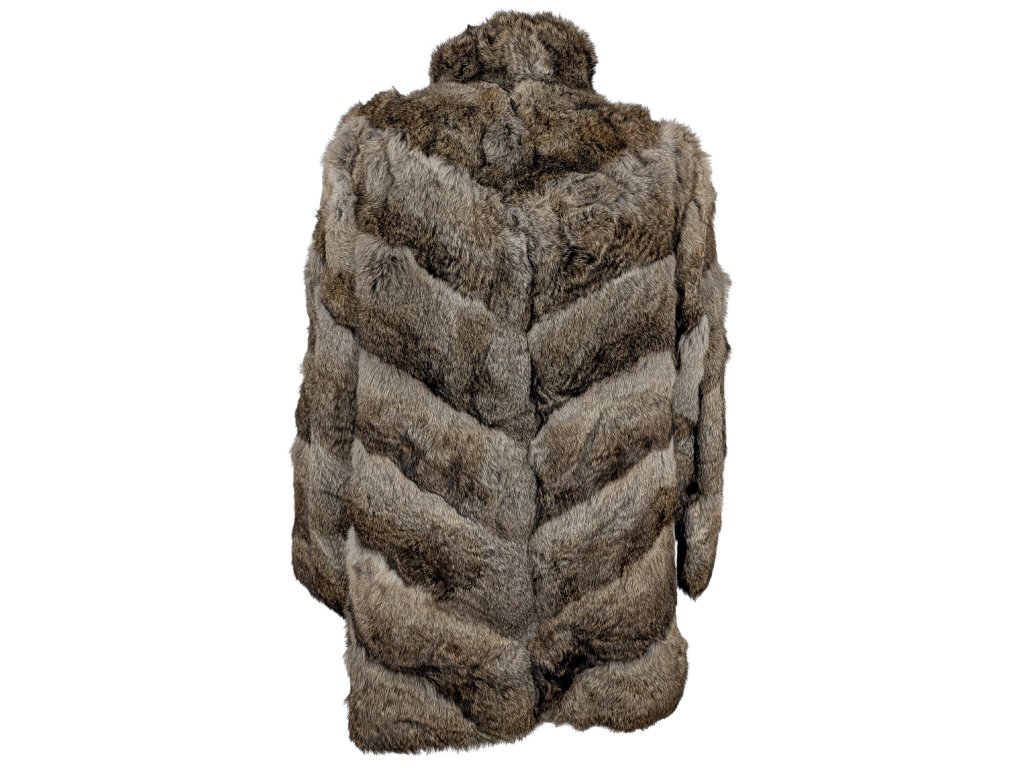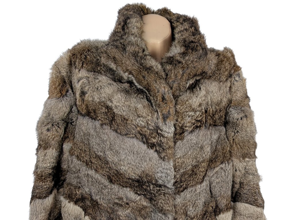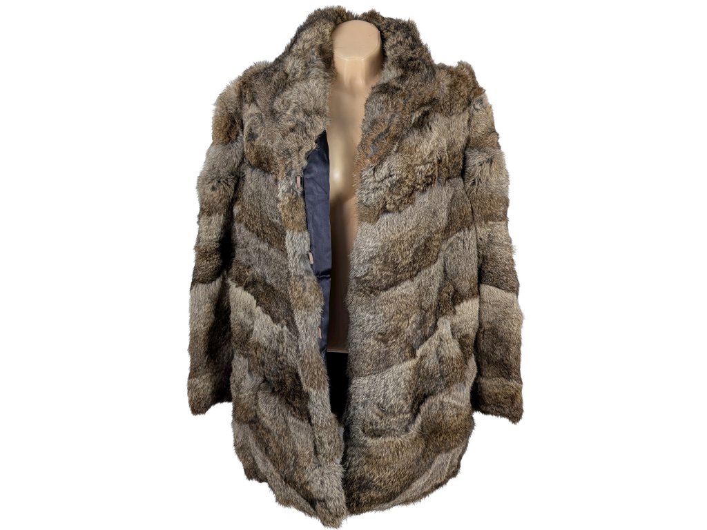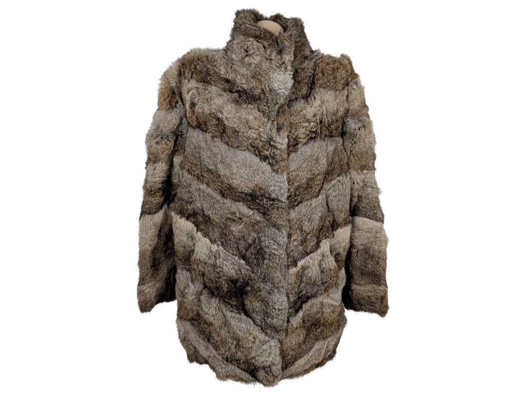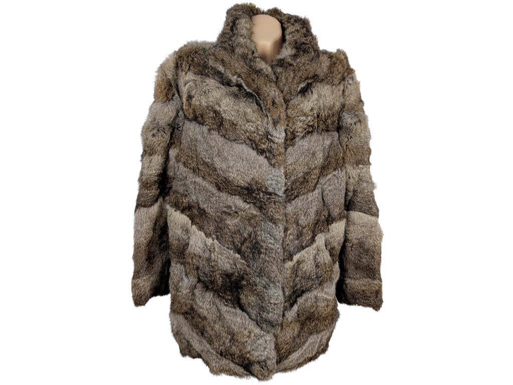Pravý dámský hnědý pruhovaný kožich XL