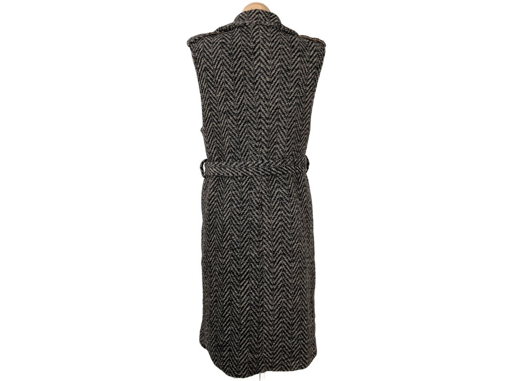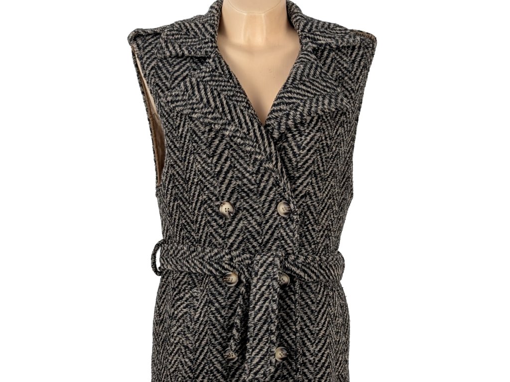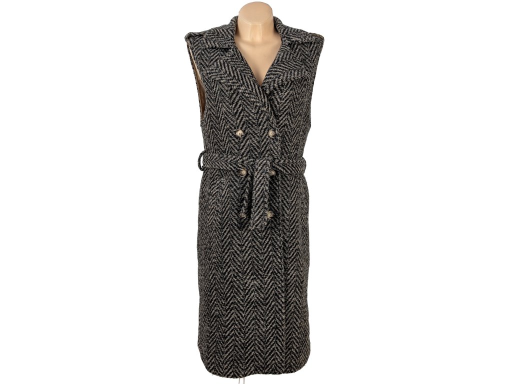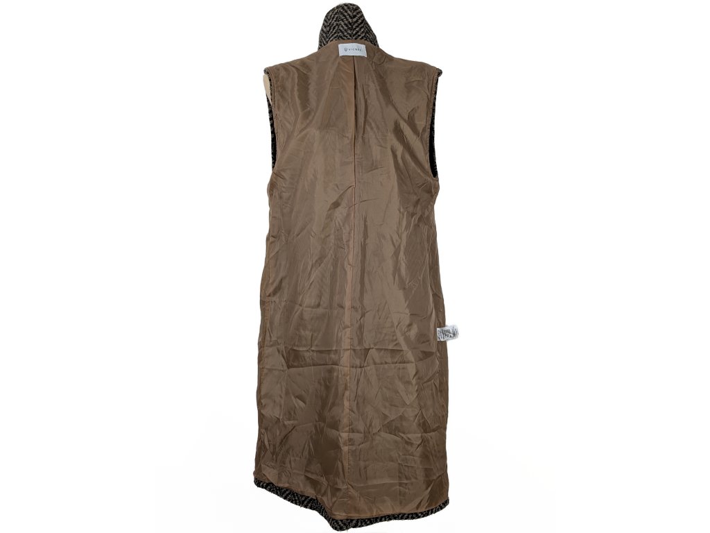 Vlněná dámská hnědá dlouhá vesta s páskem XL
