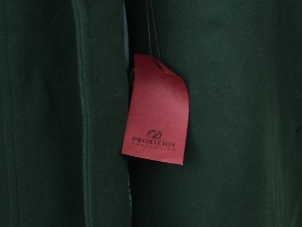 Vlněný (100%) dámský dlouhý lahvově zelený kabát Profashion XXXL+
