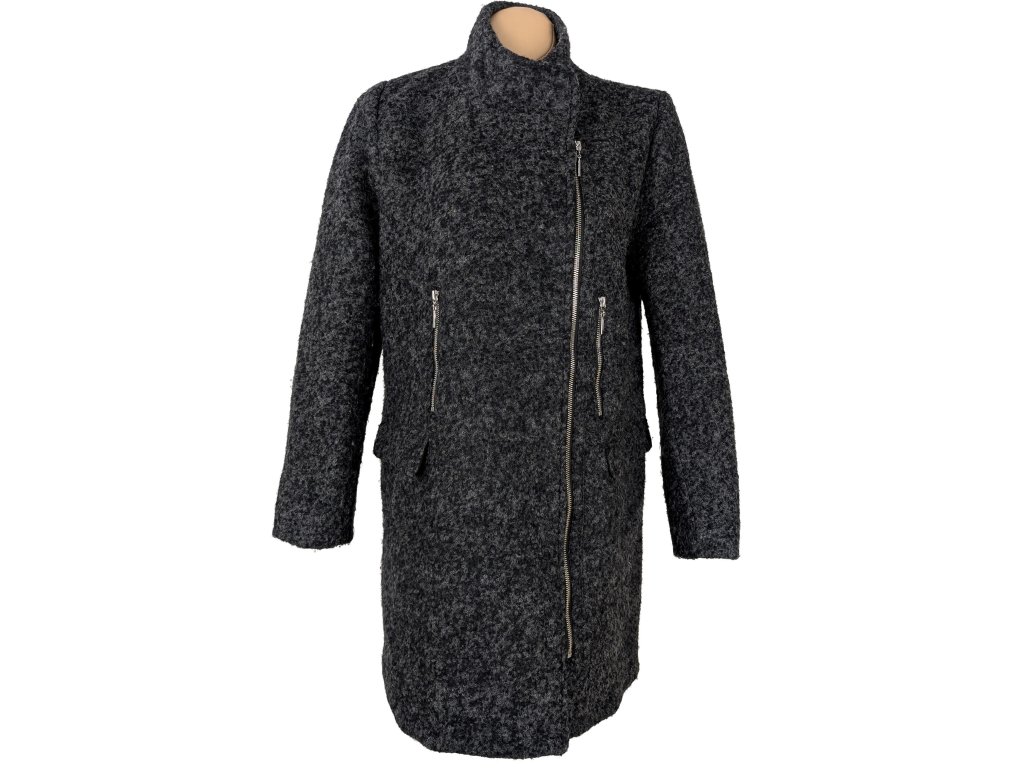 Vlněný (45%) dámský šedočerný kabát - křivák MOHITO L