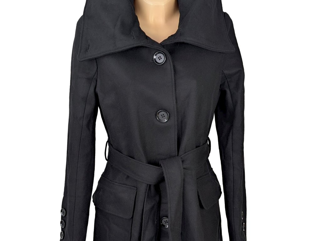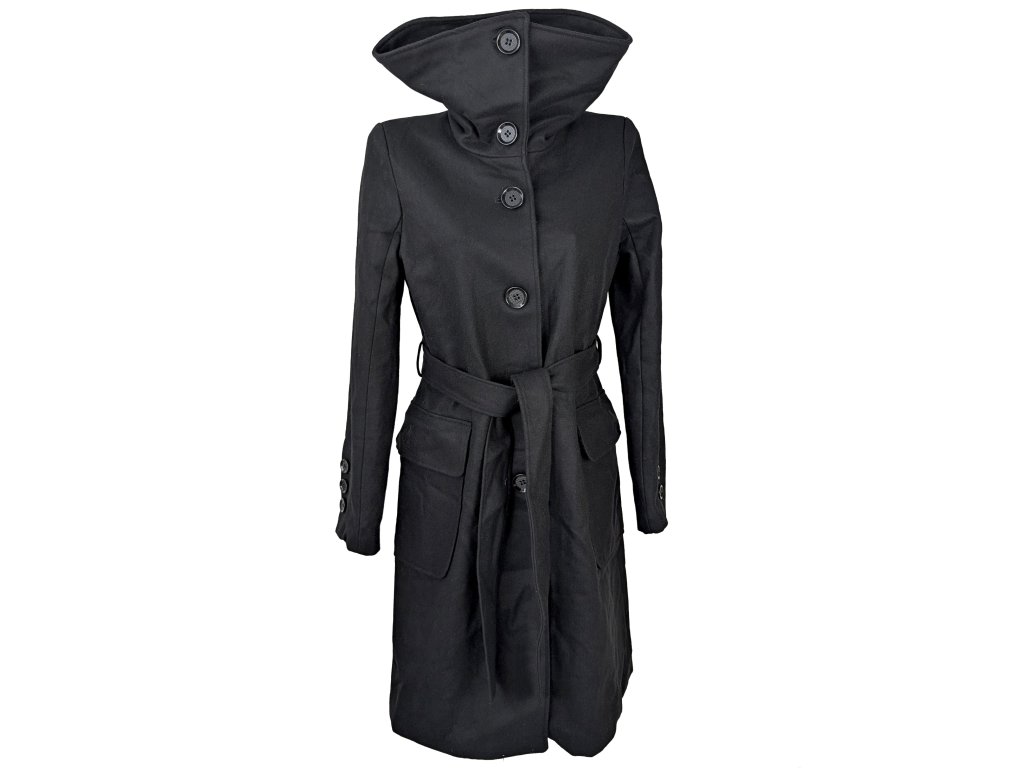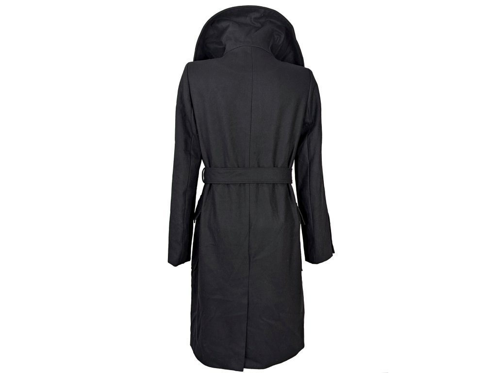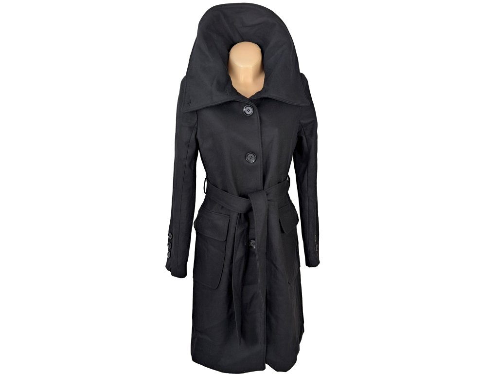 Vlněný (50%) dámský černý kabát s páskem Reserved L