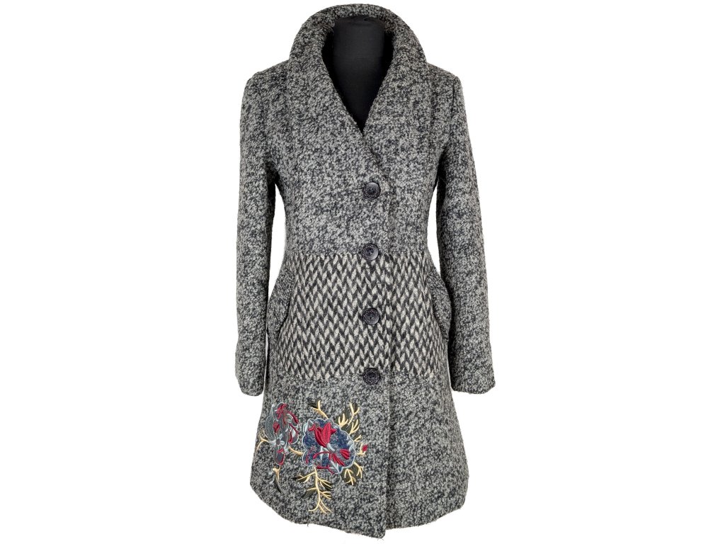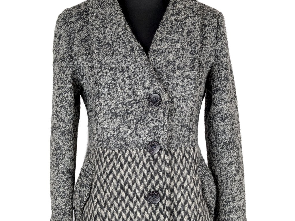Vlněný (50%) dámský extravagantní šedý kabát MISMASH M