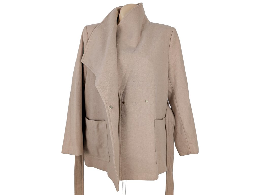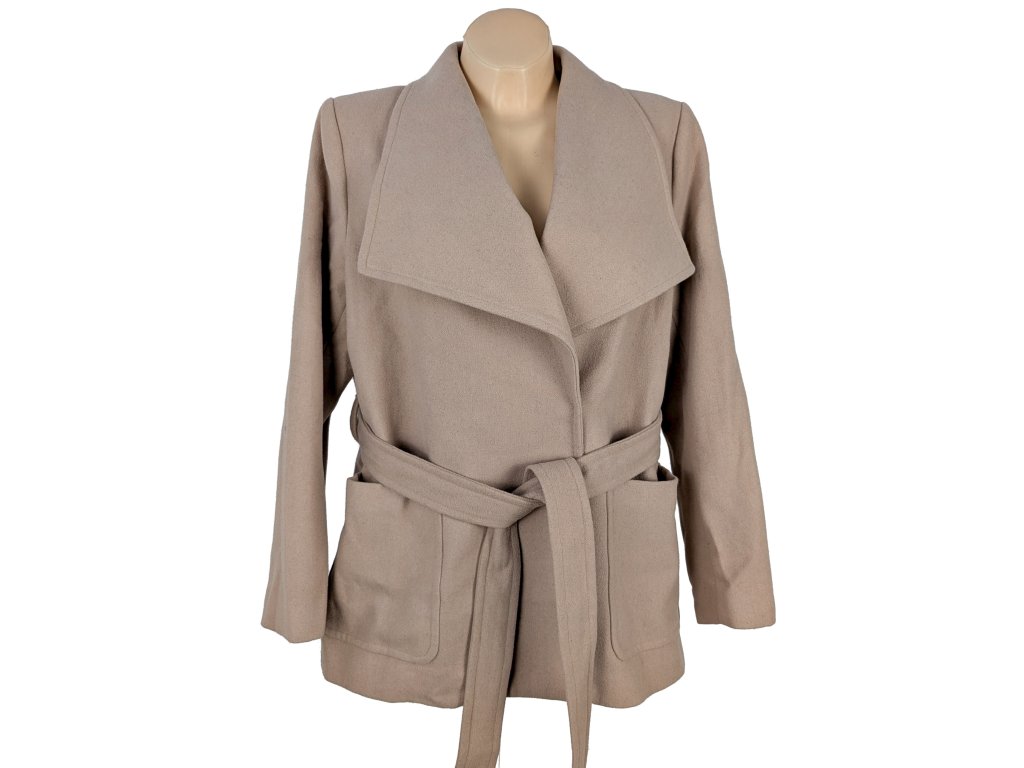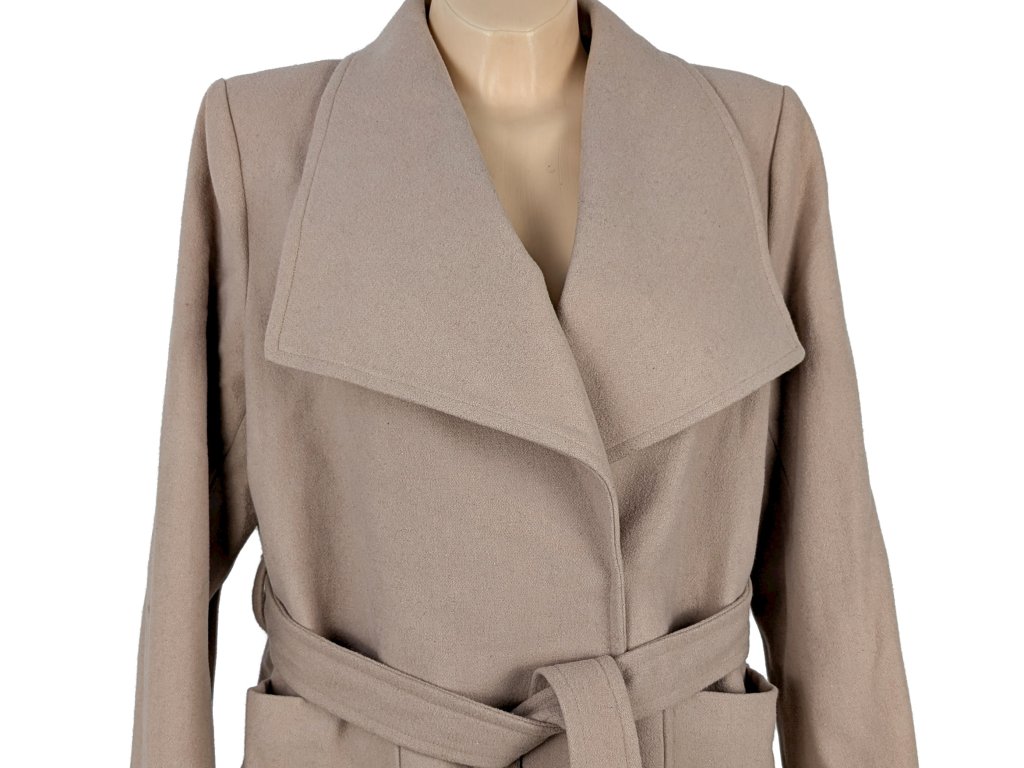 Vlněný (50%) dámský kabát s páskem H&M XXL