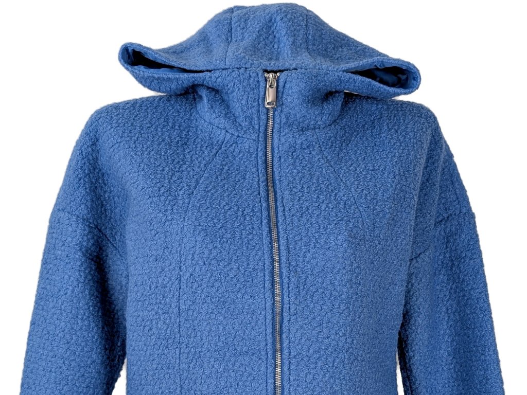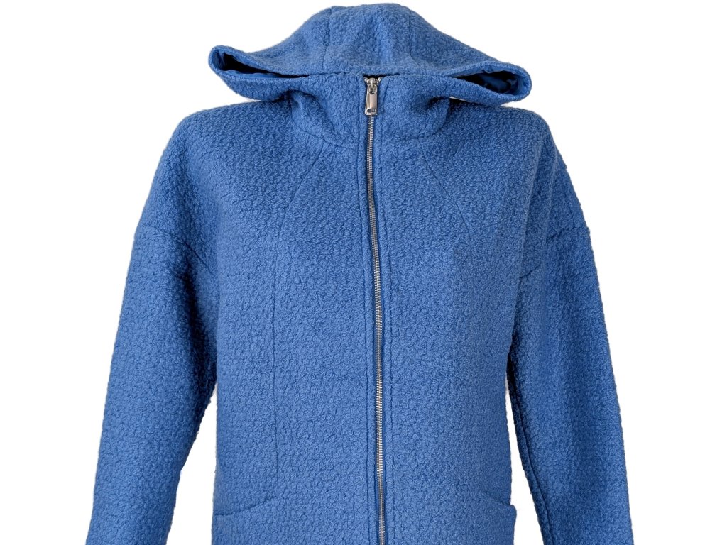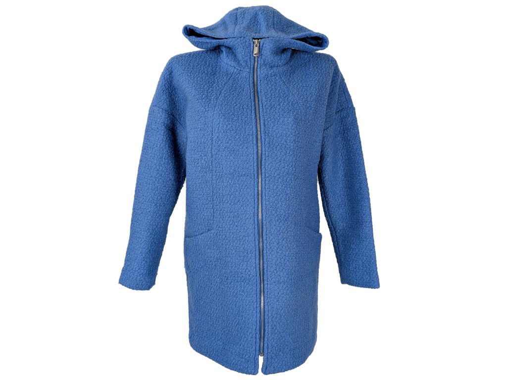 Vlněný (50%) dámský modrý kabát s kapucí Reserved 6/34
