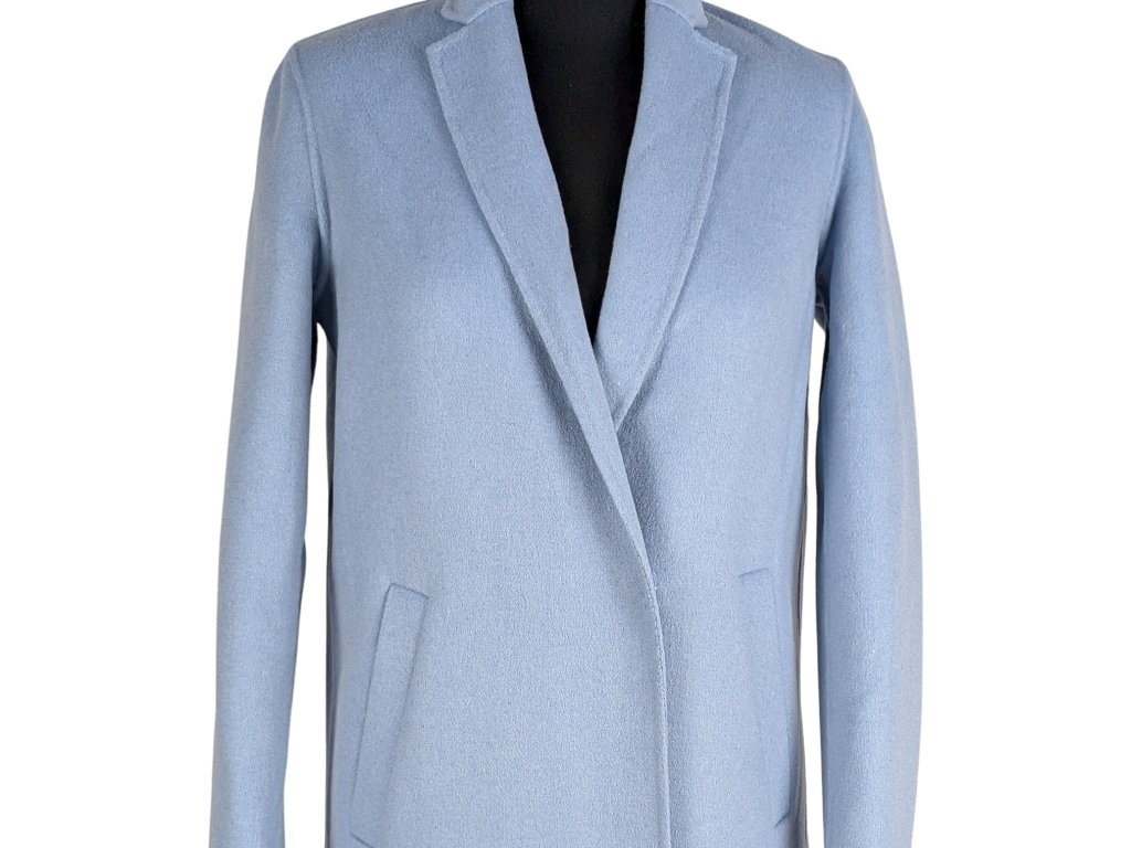 Vlněný (51%) dámský modrý přechodný kabát Reserved 34